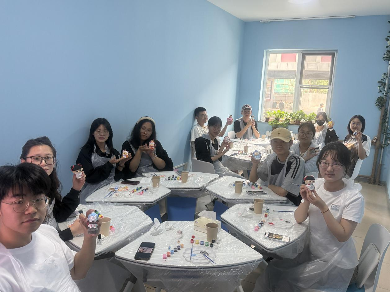 活动现场,学院为同学们准备了形态各异的石膏娃娃和五彩斑斓的彩绘颜料。同学们纷纷拿起画笔,充分发挥想象力,为石膏娃娃赋予独特色彩与个性,创作过程中大家欢声笑语不断,增进彼此了解。有人绘制出俏皮可爱的卡通形象,有人用大胆的色彩组合展现个性风格,一笔一画间,不仅舒缓了紧张情绪,更沉浸在创作的乐趣中。