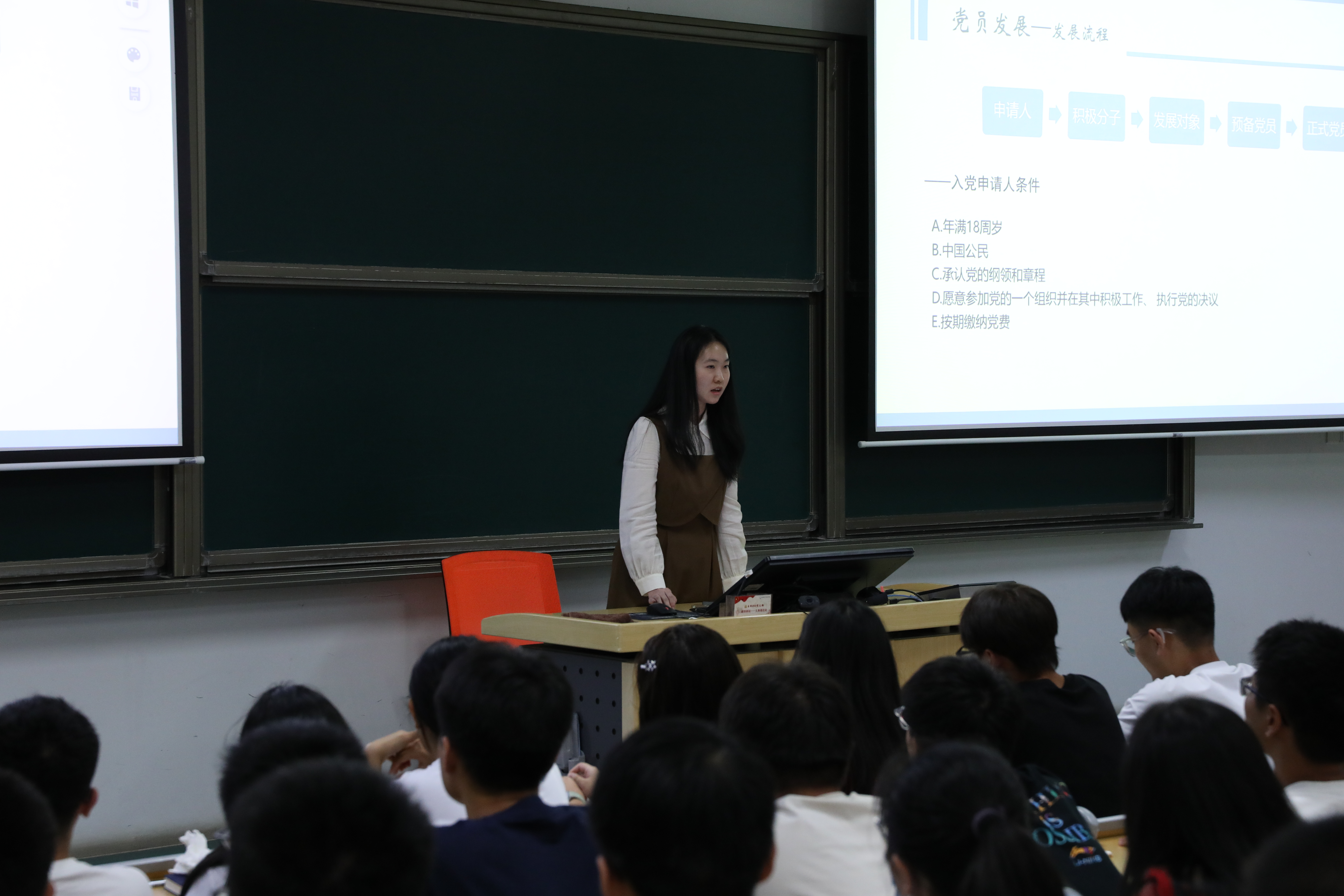 王思淼重点介绍了新生入团和发展入党的流程,鼓励同学们积极加入党团组织,不断增强政治意识、爱国情怀和社会责任感。
