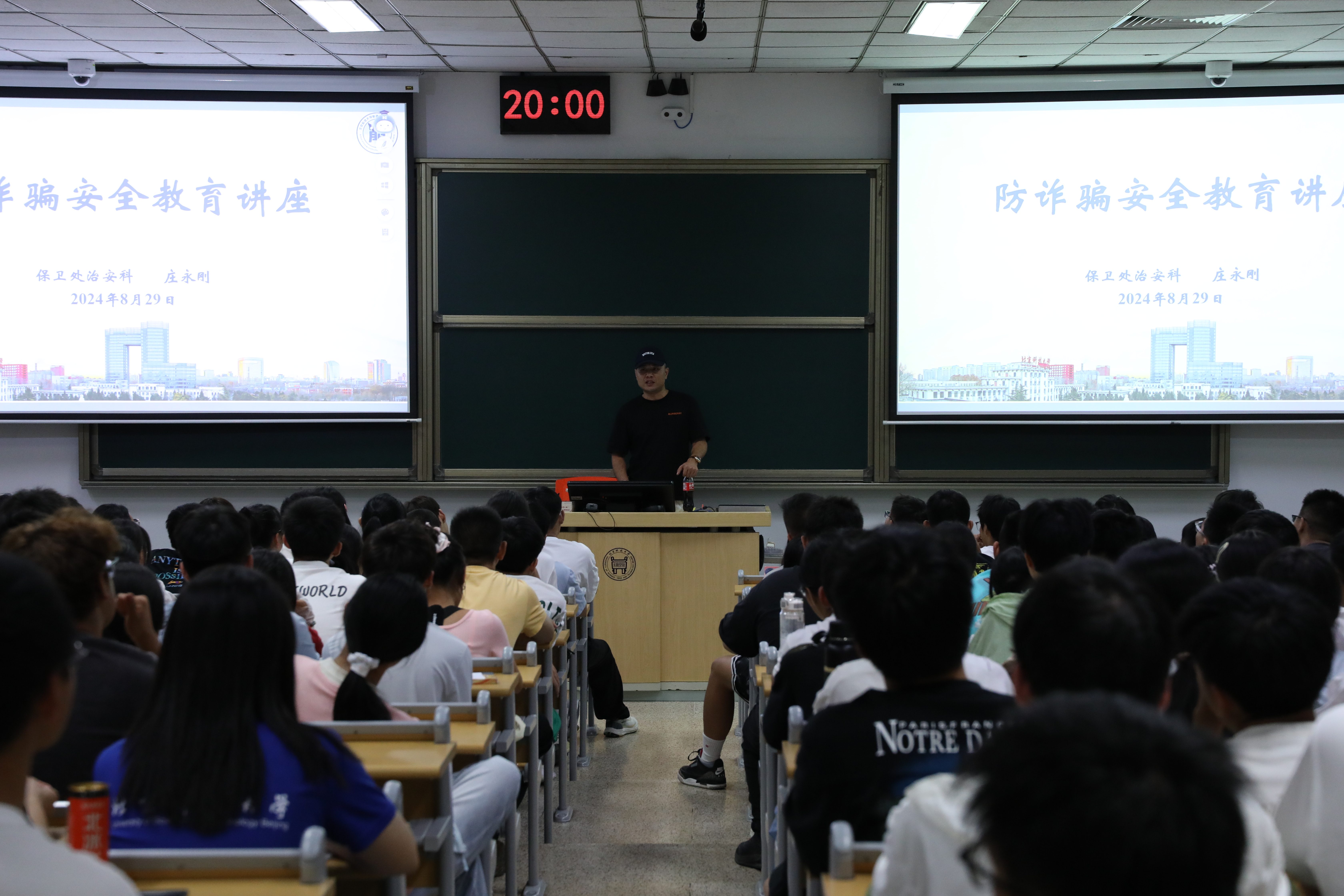 最后,庄永刚详细介绍了网购类、语言类和主观类电信诈骗类型,他生动地讲述了冒充电商物流客服、刷单返利、冒充公检法机关等案例,向同学们讲解了各类诈骗行为的漏洞。他强调,新生要警惕典型诈骗手段,保持清醒头脑,保护自身财产安全。