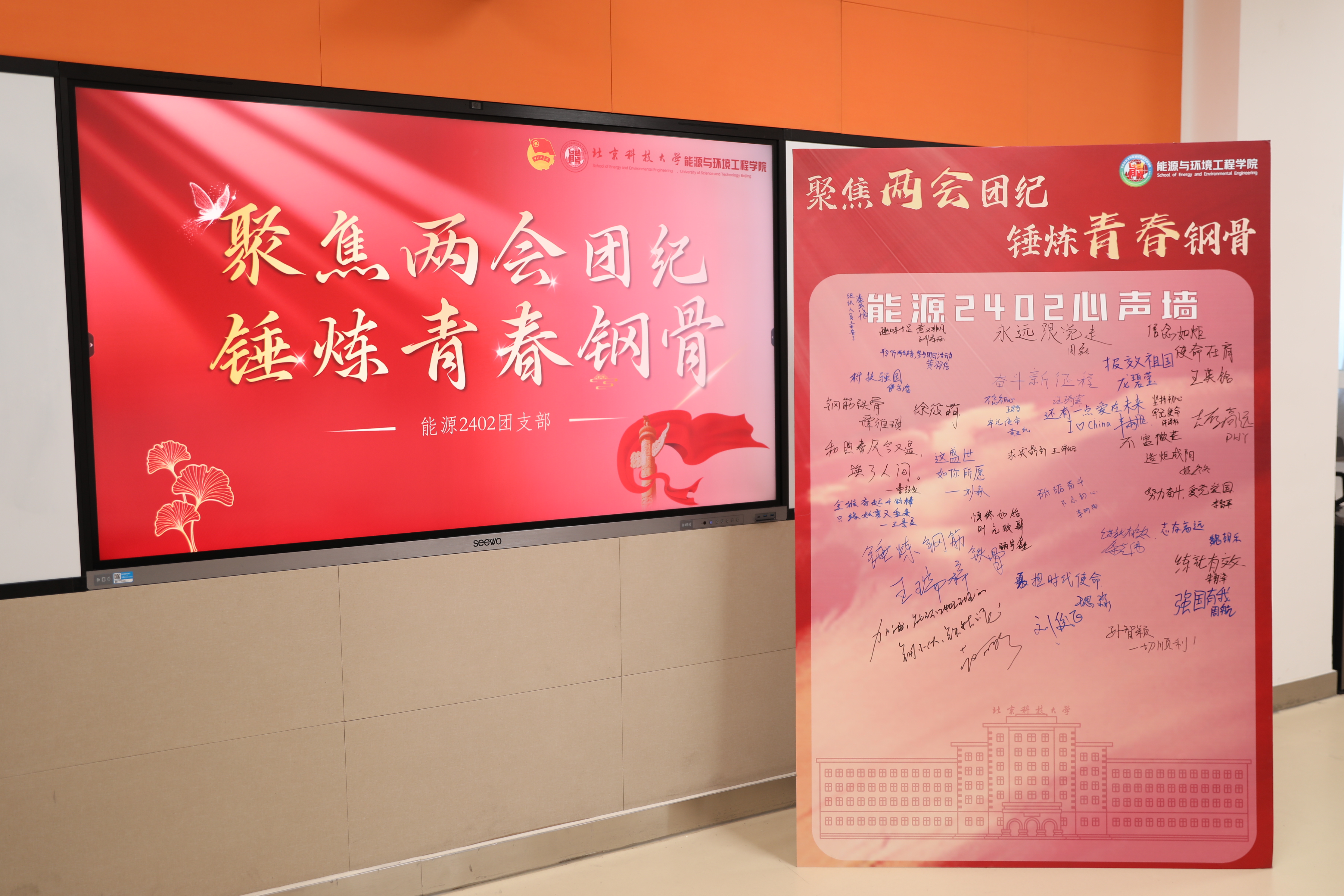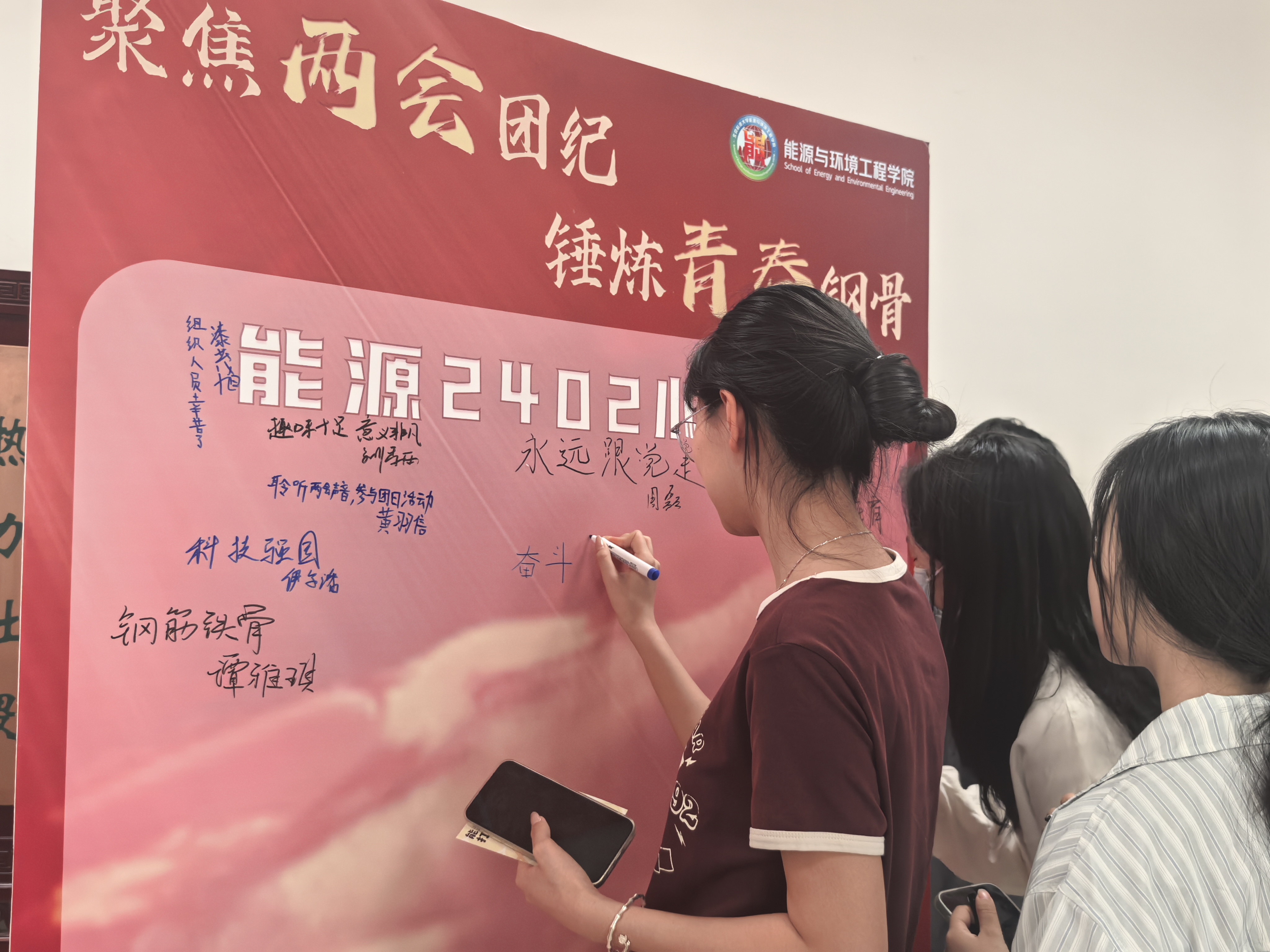 同学们完成前三个环节并完成相应环节的盖章认证后,来到心声墙前留下自己参与活动后对两会的理解和感悟,现场气氛热烈。