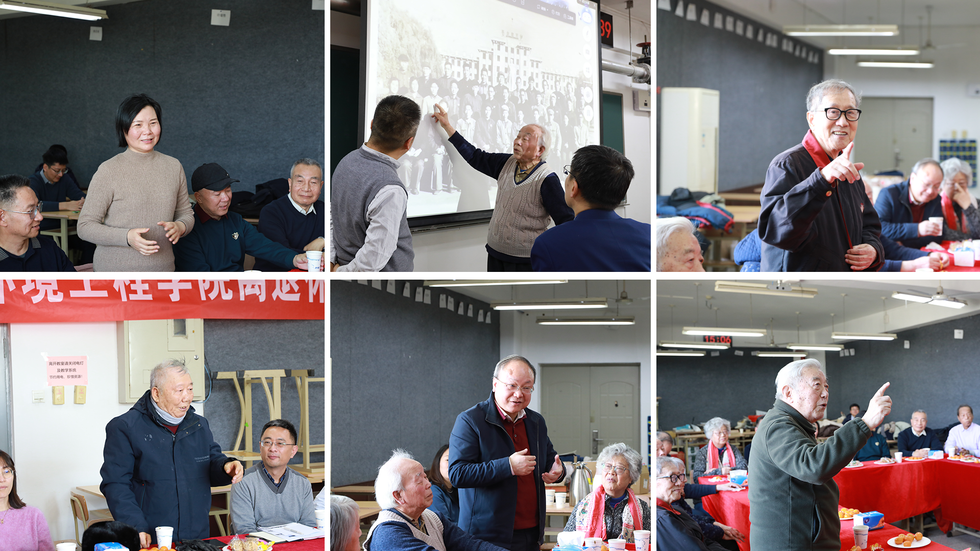 与会教师们纷纷发言,回顾曾经和同事们一同奋斗的岁月,对比热能系过去和现在的不同,肯定学院成立以来取得的成绩,同时也感谢学院提供新春团拜会这样的机会与平台,使得他们可以了解到学院、专业以及后辈们的成长与发展情况。现场活动气氛热烈,老教师们共叙旧情,其乐融融。
