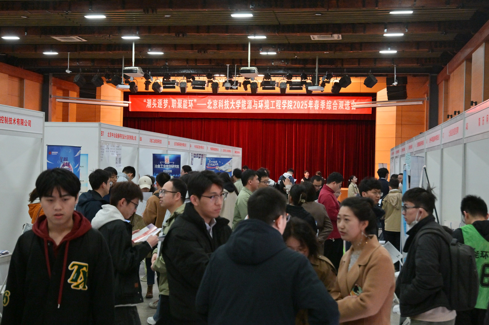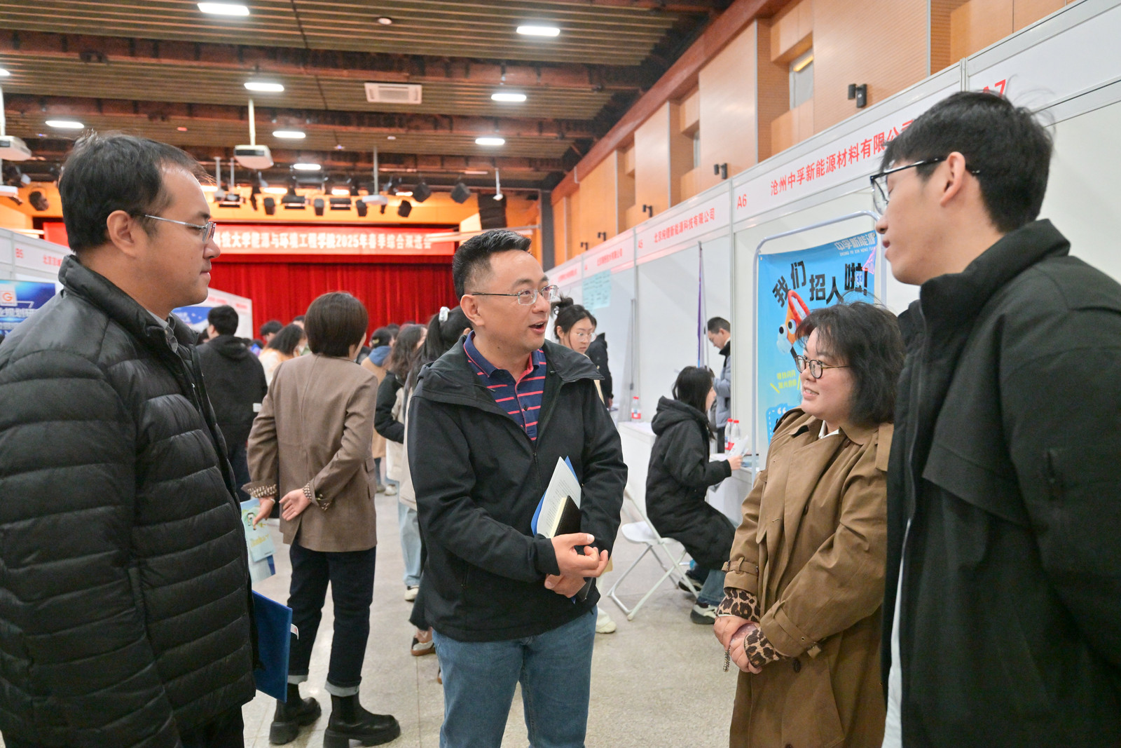 能环学院近年来紧密围绕国家能源转型需求,构建“产学研用”一体化培养模式,此次与北极星校园招聘的合作,旨在为行业精准输送高素质应用型人才,本次招聘双选会共有41家能源和环保类优质企业参与,共提供500余个校招和实习岗位,累计参会学生800余人次。北极星招聘代表温文媛表示,作为深耕能源环保领域的专业招聘平台,北极星已联合全国多所高校举办行业专场双选会,本次参会企业均经过严格筛选,岗位需求与能环学院学科方向高度匹配,招聘单位涵盖了能源动力、环境保护、知识产权、科研院所、建筑制造等多种行业。招聘会现场人头攒动,气氛热烈,各企业单位向求职学生热情介绍自身企业文化、招聘需求、福利待遇、产业结构等,真诚邀请学生加入。求职毕业生认真聆听,与用人单位充分交流,积极投递简历。2022级环境科学与工程专业硕士研究生刘朝晖表示,自己手上已经有几个面试在等待结果,想要再多应聘几家企业,感谢学院举办这次双选会,为毕业生提供了与企业线下面对面交流的机会,希望今天能够收到好消息。2021级环境工程专业本科生马于婷表示,参加学院专场双选会对于求职经验较少的本科生很有意义,今天的招聘岗位基本都是跟专业相关的,而且岗位质量较高,机会难得。