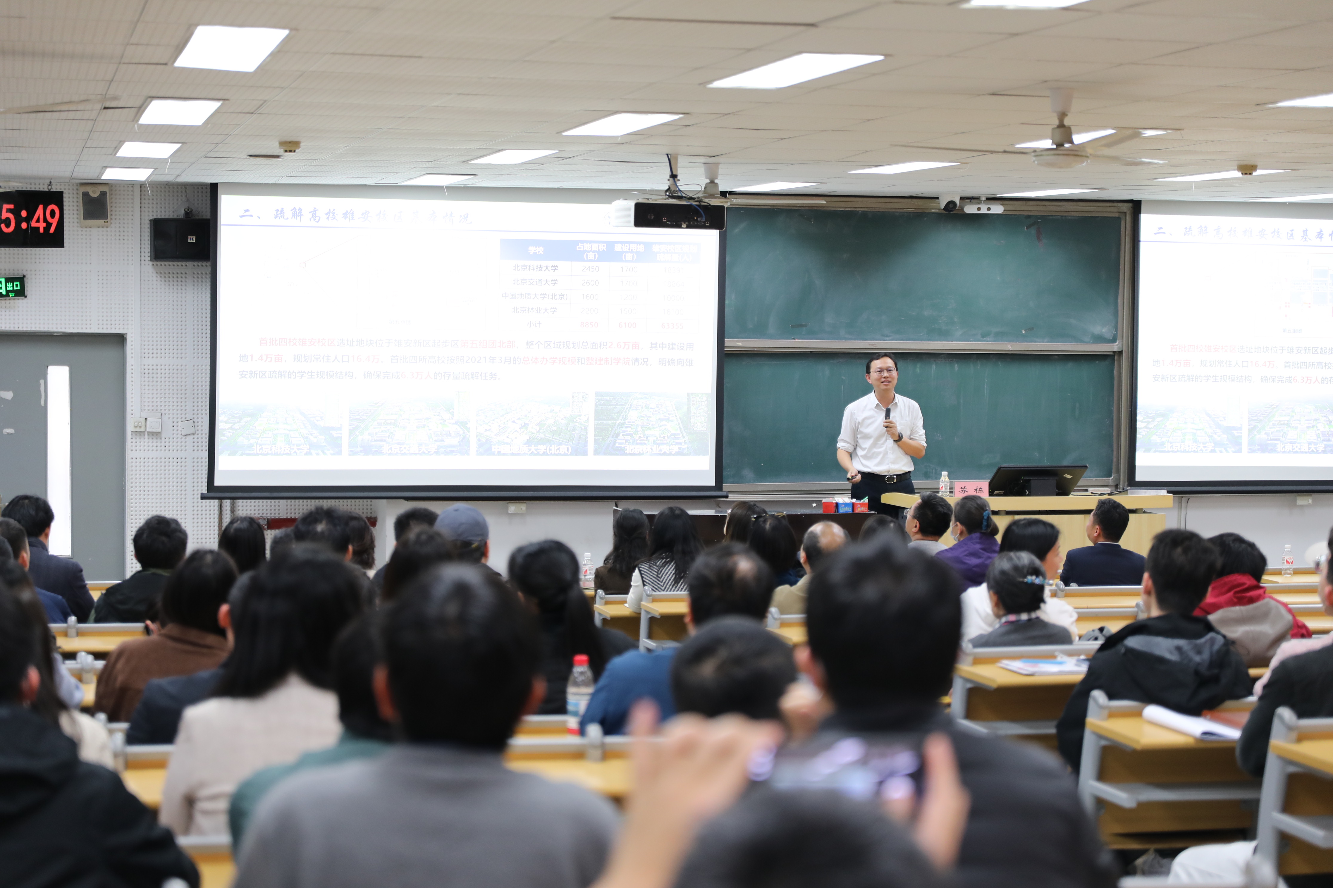 苏栋首先向与会教职工介绍了雄安校区的整体规划、建设进展以及未来展望。他详细阐述了雄安校区作为学校发展的重要战略布局,其建设不仅关乎学校的长远发展,更承载着培养新时代高素质人才、服务国家重大战略需求的重要使命。他的分享,让教职工们对雄安校区的建设有了更加全面和深入的了解,也进一步激发了大家对学校未来发展的信心和期待。