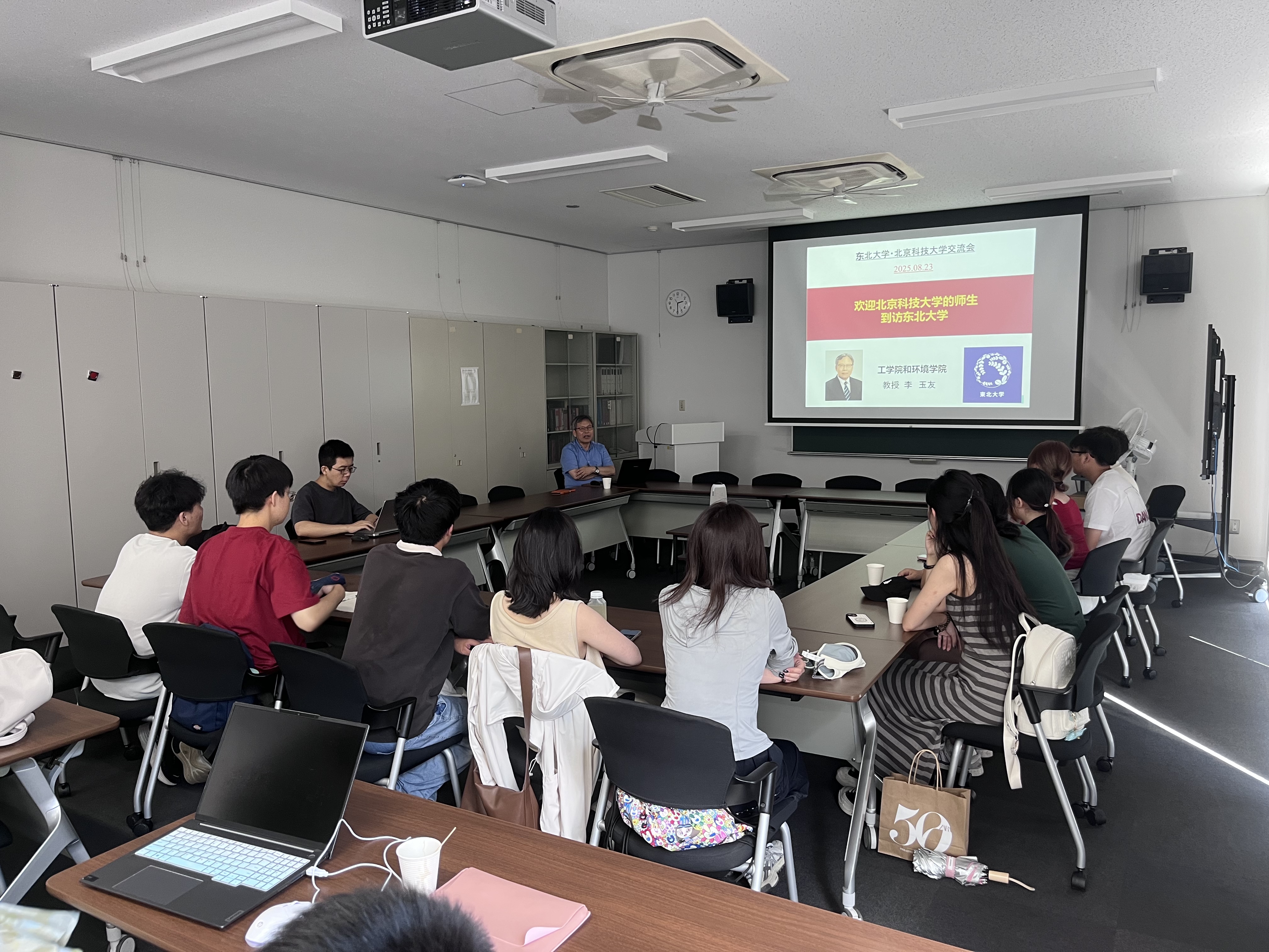 同日下午,师生集体前往日本东北大学青叶山校区,与工学研究院土木系环境保护研究室的师生举办了座谈会,双方分别介绍了各自学校系所的基本情况。同学们依次发言,分享了连日来在日本的所见所闻和所思所想。环境保护研究室介绍了所开展的研究工作,聚焦于“污水低碳处理及资源能源回收”主题,同学们基于“厌氧氨氧化技术应用于污水处理”相关案例,了解了该研究室的科研成果与技术动态,剖析了各项成果的原理及其应用对相关行业带来的革新影响,同学们亲身感受了严谨的学术态度和科研精神。随后双方就东北大学的科研环境和留学生活展开了热烈深入的交流,探讨了未来相互之间开展科研合作和我校本科毕业生,硕士毕业生前往东北大学进一步深造或者开展研究的可行性。