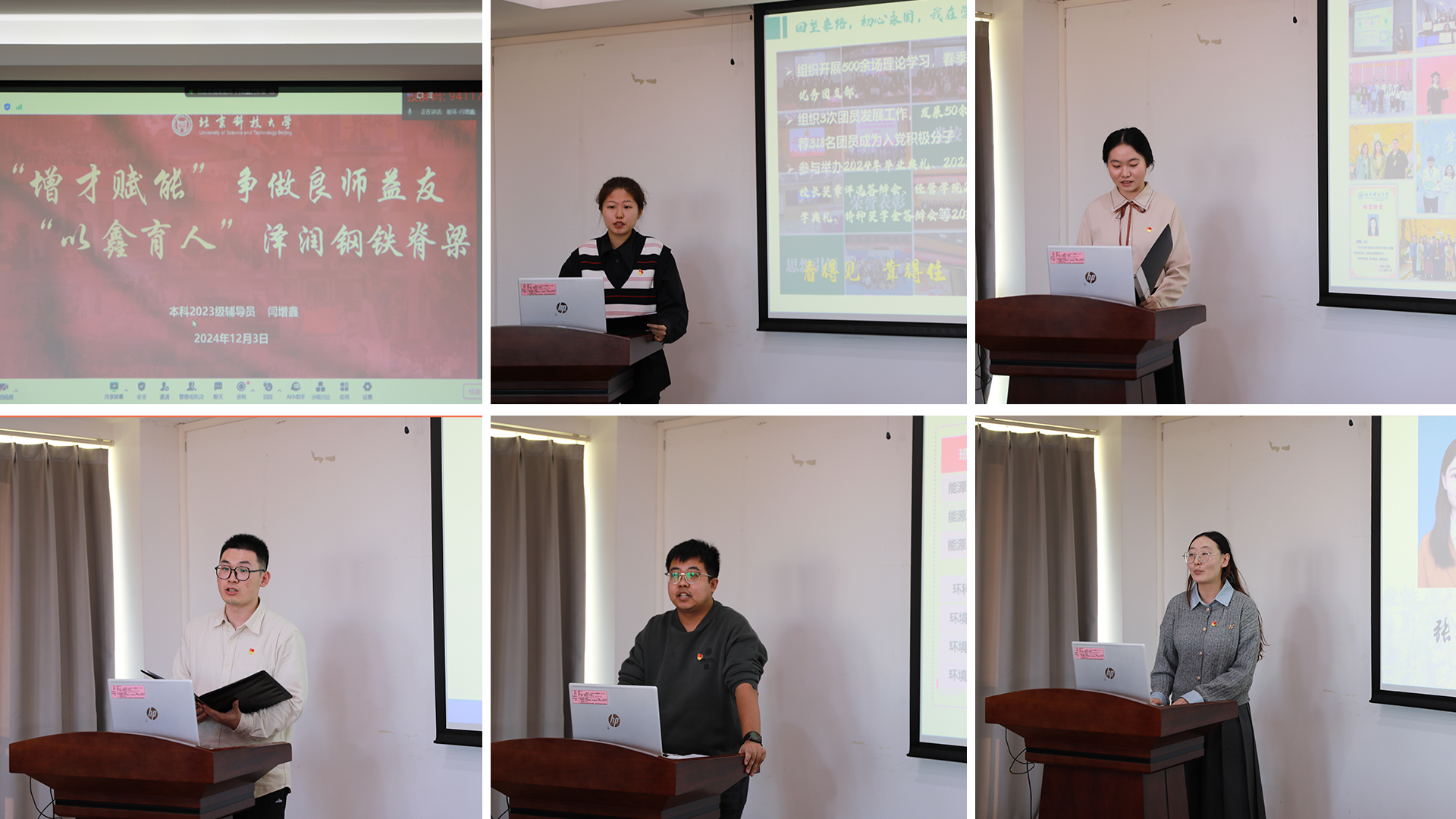 述职会上,能环学院12位专兼职辅导员围绕上一学年开展的主要工作,从思想理论教育和价值引领、党班团建设、学生日常事务管理、心理健康教育、生涯规划与就业指导以及个人发展等方面依次进行总结汇报,同时分析存在的问题,提出下一步工作计划。与会领导结合辅导员日常表现和工作汇报进行评议打分。