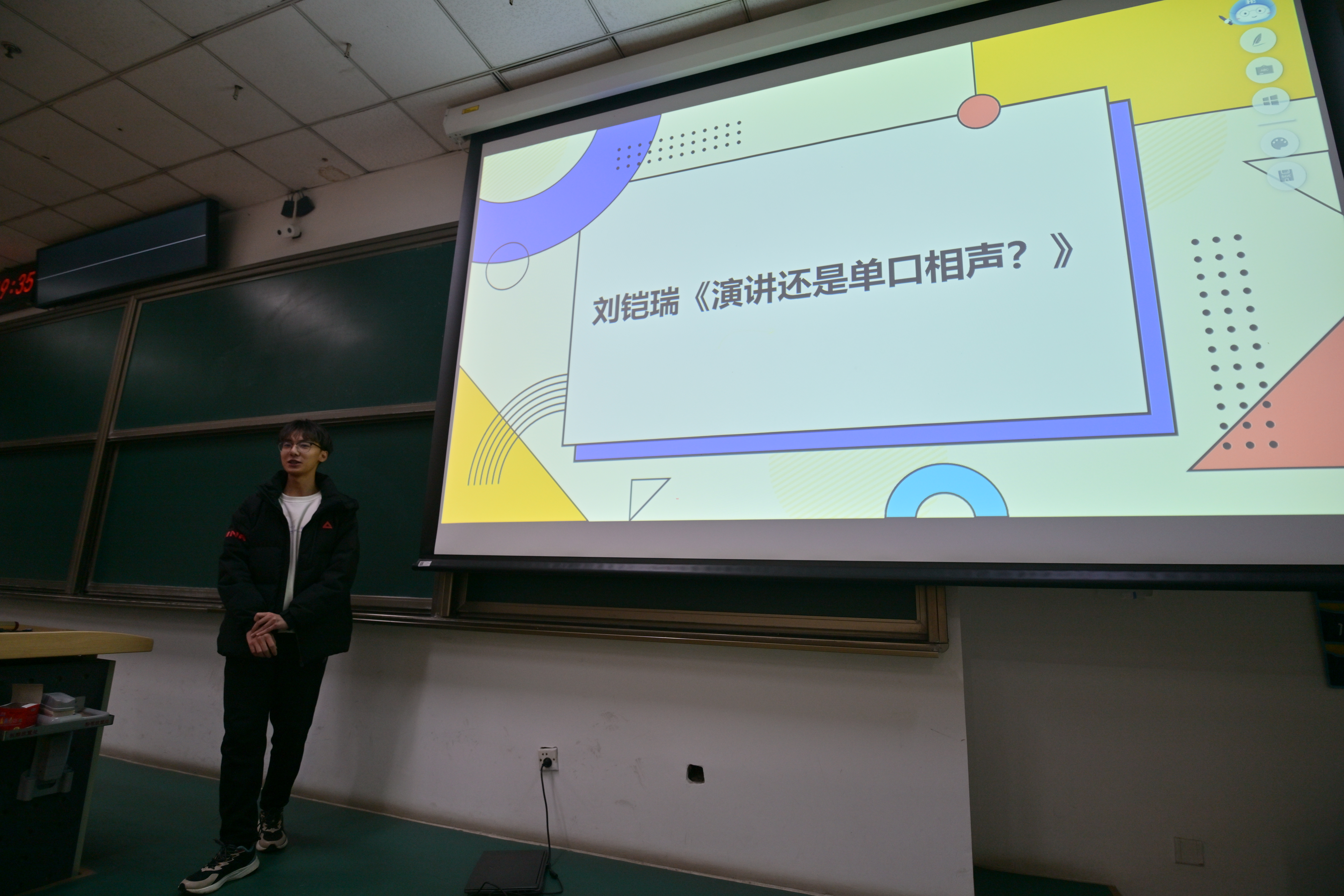 在个人篇部分,刘铠瑞以单口相声独辟蹊径,将每一位室友的独特个性与闪光点,通过诙谐幽默的语言一一呈现。陆渤霖则以深情朗诵直击人心,用饱含深情的语调倾诉着对宿舍这一“小家”的深厚情谊。姚明轩先后用配音和作诗的方式进行展示,独特的创作令人印象深刻。这三位同学以其精彩的表现,充分彰显了个人风采,为宿舍文化节注入了青春活力。
