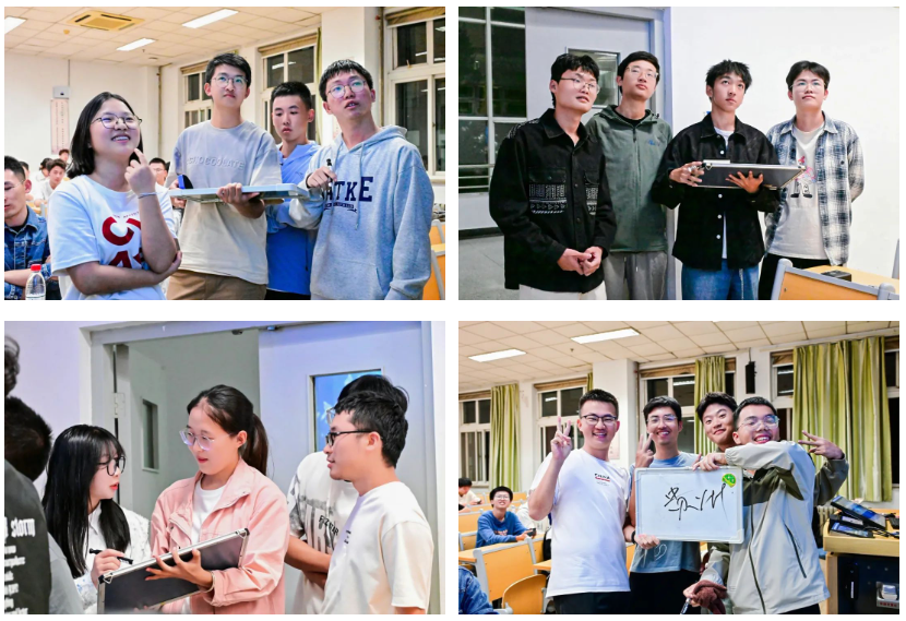第一轮“智在必得”环节。每三个班级为一组,通过举牌进行作答。答对加1分,答错或未作答不扣分。所有组答题结束后,按积分排序,最终能源2402、能源2405、能源2406三支队伍进入了决赛的比拼。