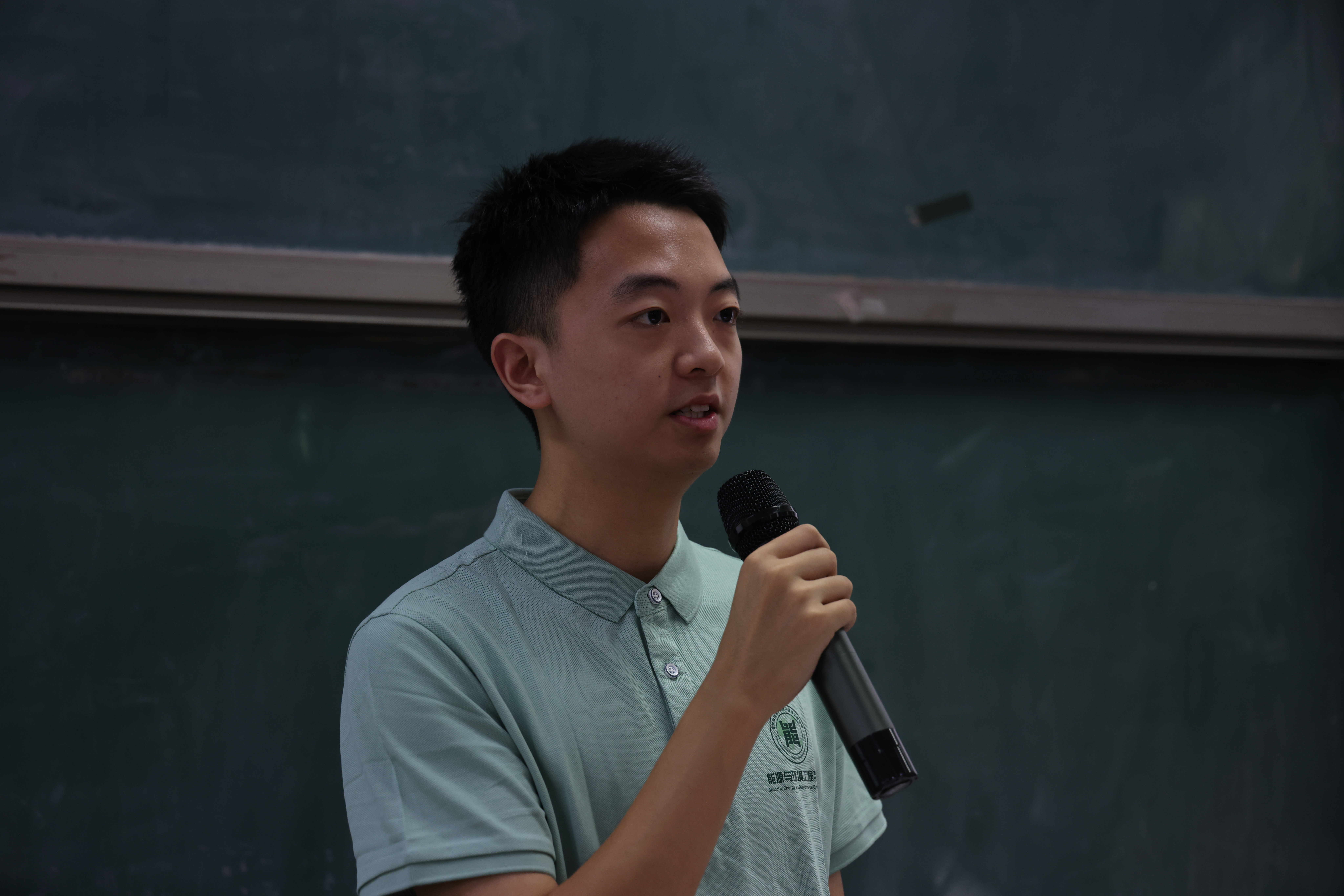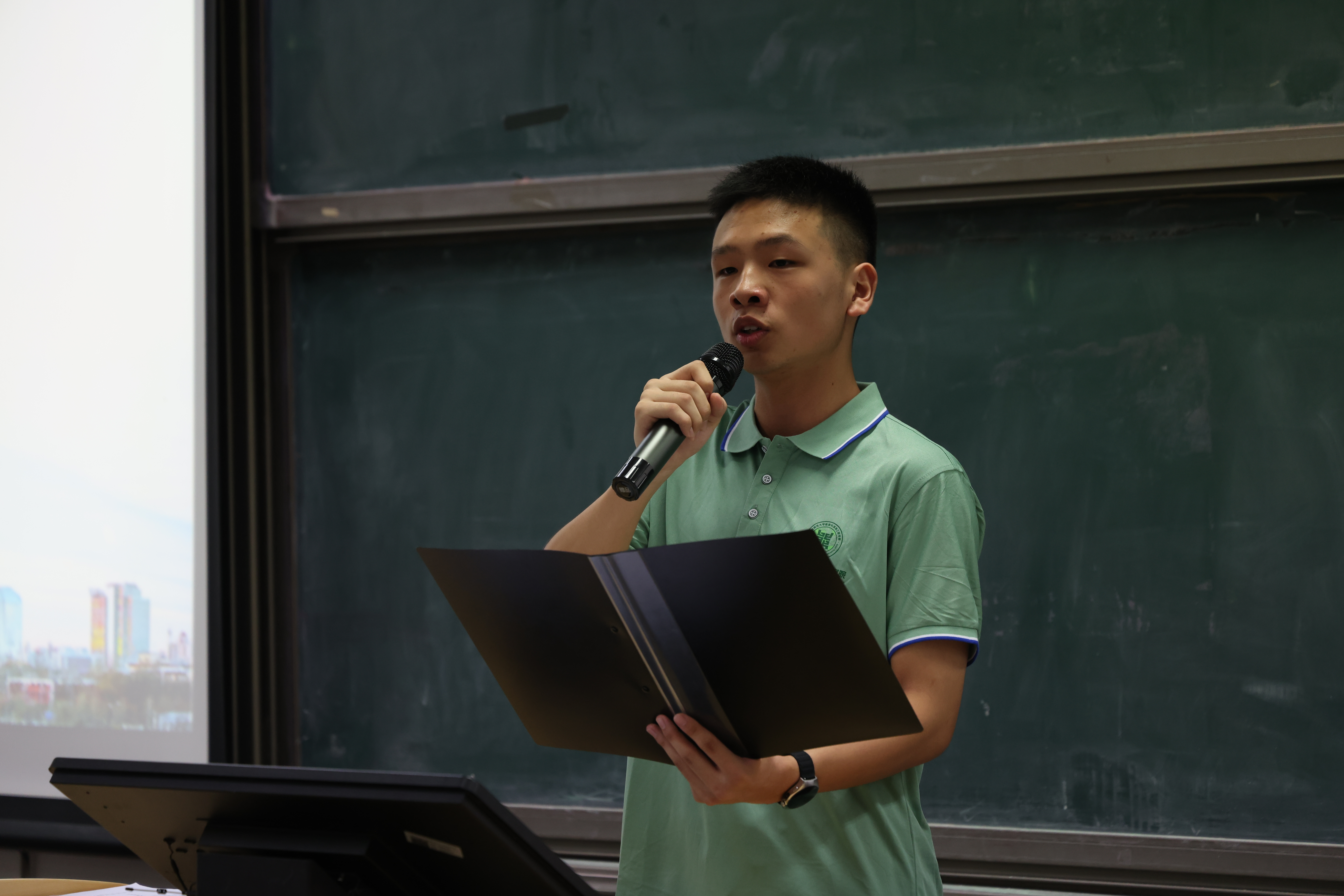 学院学生会主席团成员李育新在发言中围绕“求实鼎新”的校训精神展开分享,鼓励学弟学妹脚踏实地、勤奋学习,同时敢于创新、突破自我,在丰富的校园活动中拓宽视野、锻炼能力。