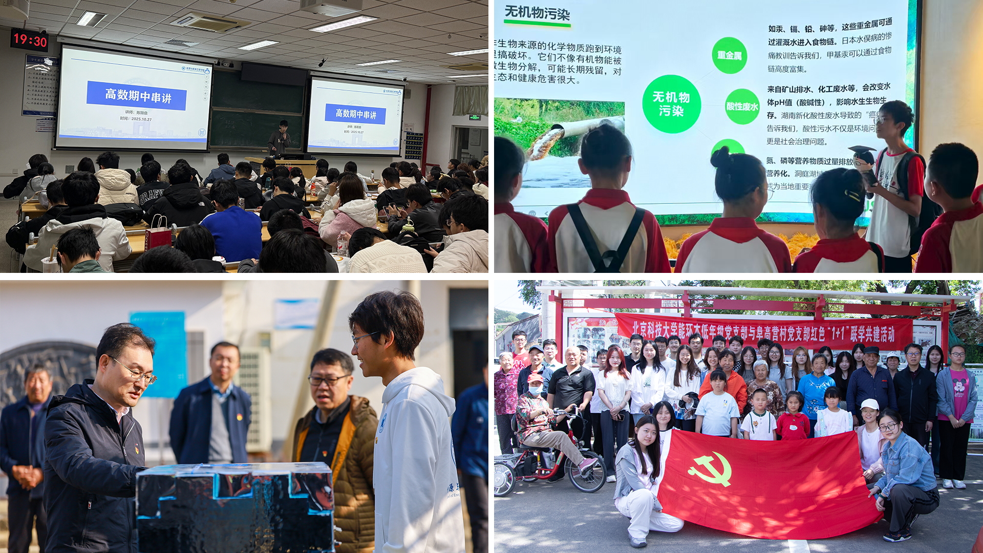 支部构建“一项、两团、三课”特色助学机制,形成40余对帮扶小组,被帮扶同学补考通过率超95%,获评助学零距离优秀案例。连续两年开展“寻访美丽中国”实践行动,组织成员奔赴10余个省开展生态走访,形成报告60余篇、影像素材600余份。连续四年与阜高营村党支部开展红色“1+1”共建,开展“科学护水、科创净水、科技节水”三项行动,切实推动当地生态富民,在北京市红色“1+1”示范活动评选中荣获一等奖。