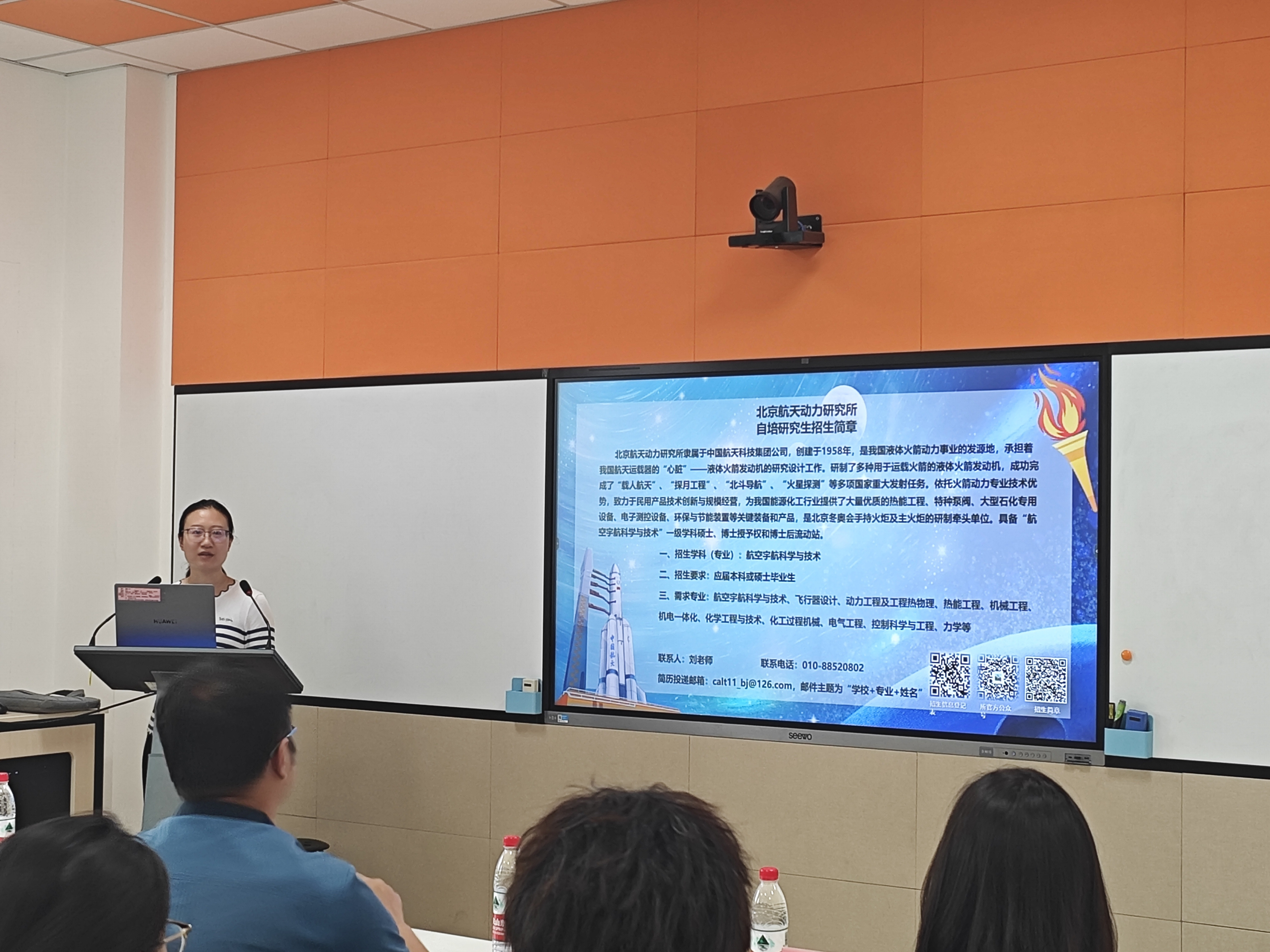 刘莎首先向同学们介绍了北京航天动力研究所的发展历程、师资力量、科研平台及其取得的成就,并对其在国际、国内航天动力领域的地位进行了深入分析。她详细讲解了北京航天动力研究所针对2021级本科生的招生简章,强调了该所独特的人才培养模式和未来发展路径,展现了其在航天动力领域的特色优势。