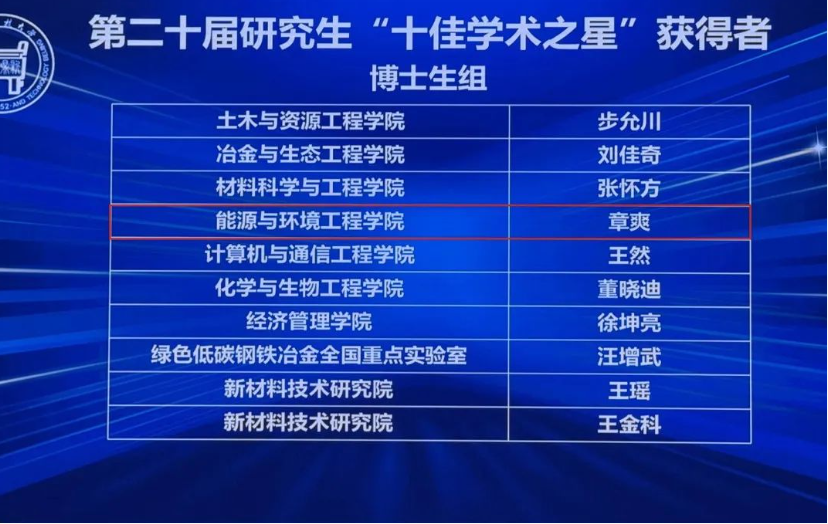 第二十届“十佳学术之星”(博士)获得者:章爽