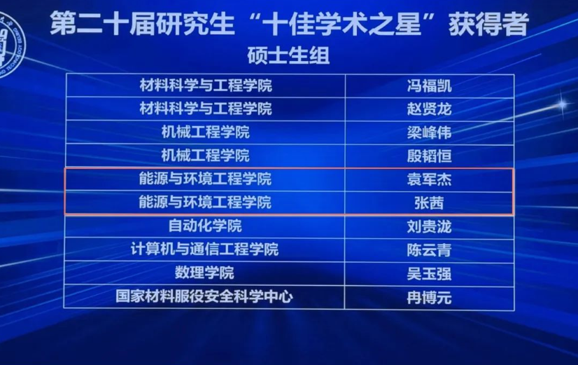 第二十届“十佳学术之星”(硕士)获得者:袁军杰、张茜