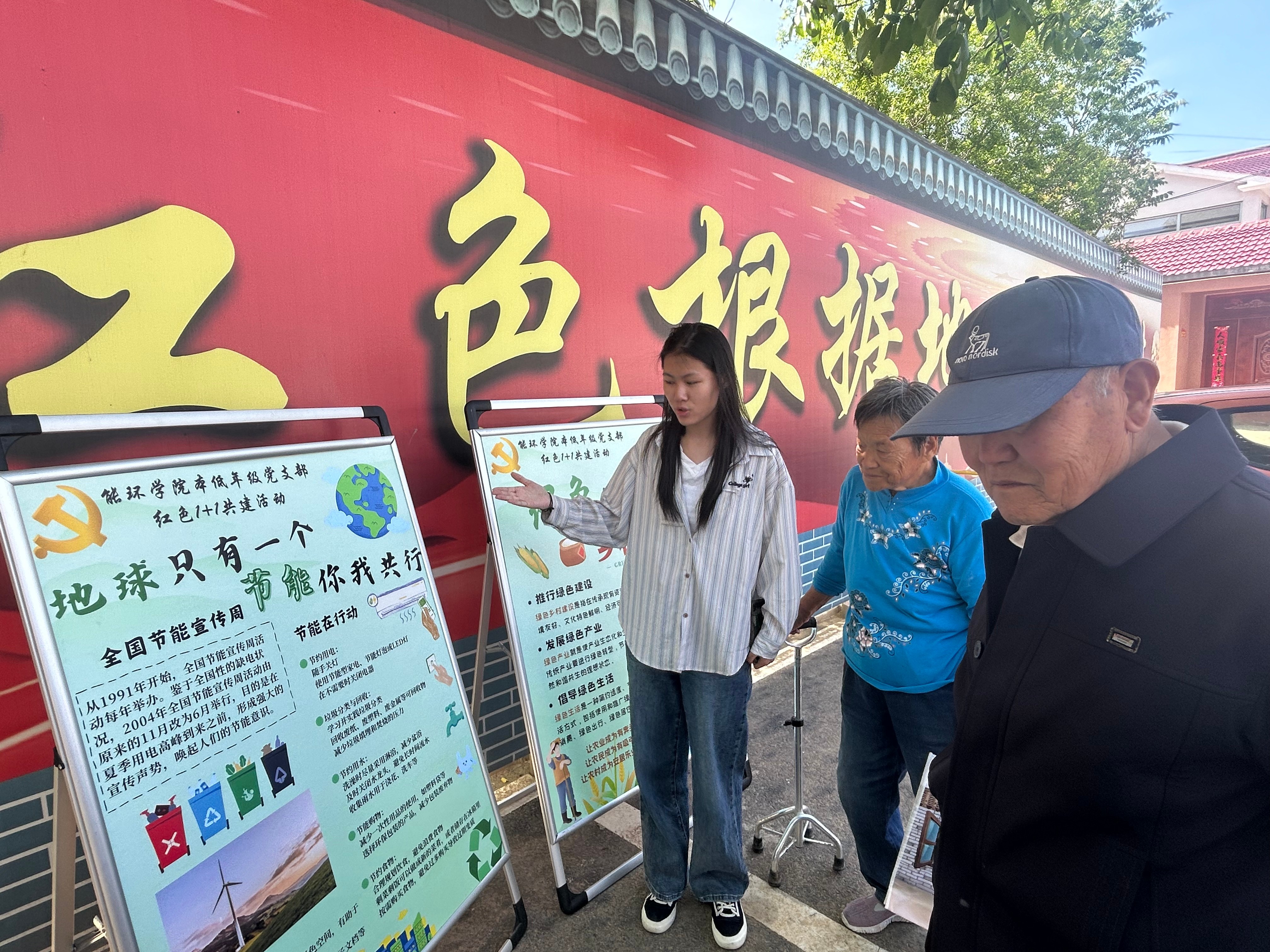 在阜高营村的主题宣讲活动现场,能环学院的师生们从“饮水安全”“两山理论”“乡村振兴”“全国节能宣传周”“全国低碳日”“环保志愿服务”六个方面入手,结合趣味展板,以生动的语言和丰富的案例向村民讲解绿色低碳、节能节水等环保知识。同时,党支部成员带来了亲手制作的节能减排科技创新作品,他们现场操作专业的环保设备,带领村民们沉浸式感受了垃圾分类、污水处理等环保技术的操作流程,让村民们对生态环境保护有了更直观的认识。