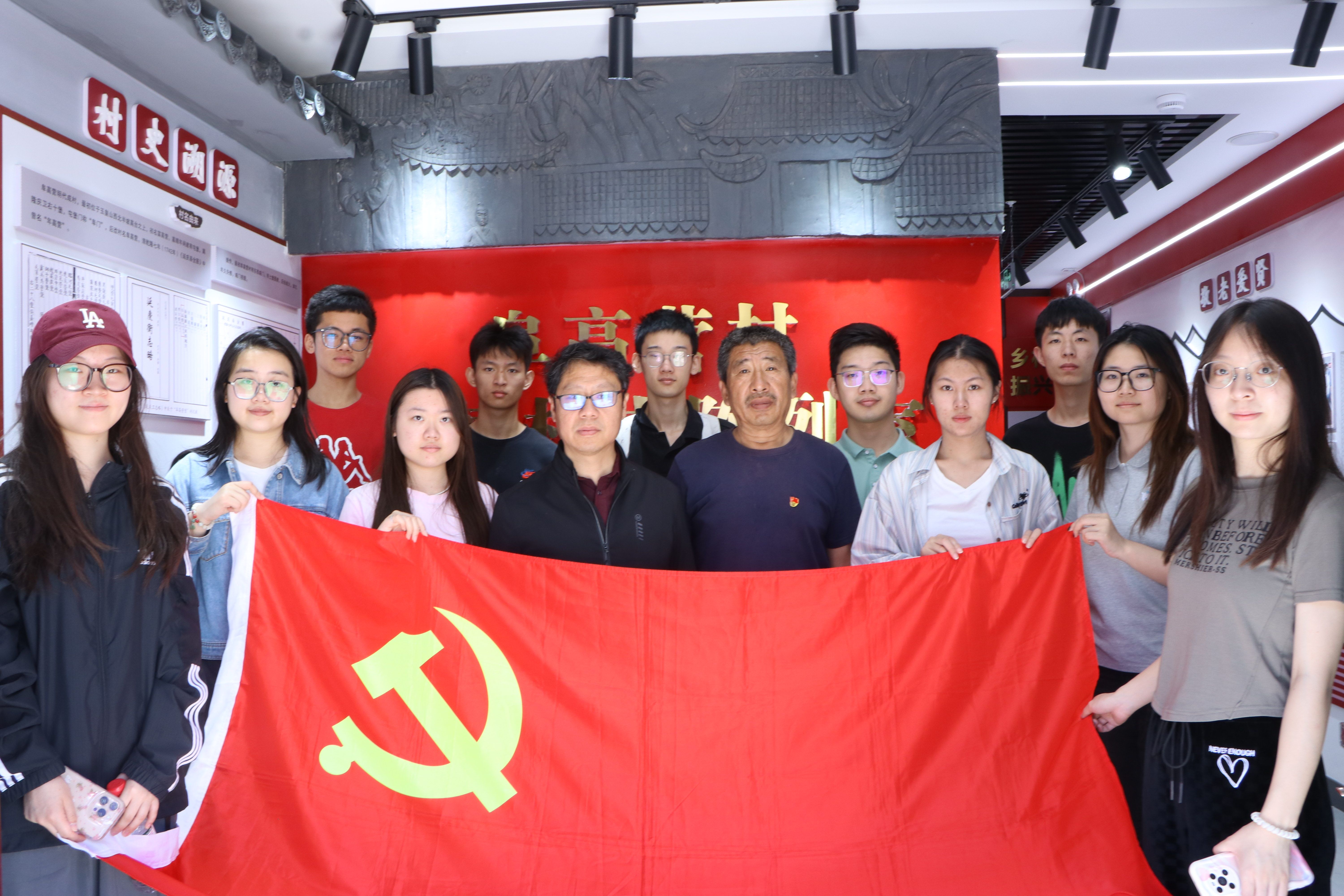 赵学智带领全体同学参观“阜高营村大学生人才榜”和“发挥教育优势,赋能乡村振兴”专题展览板并介绍阜高营村的发展规划。参观结束后,全体学生在“红色阜高营,状元摇篮村”大学生签名墙上签名留念。