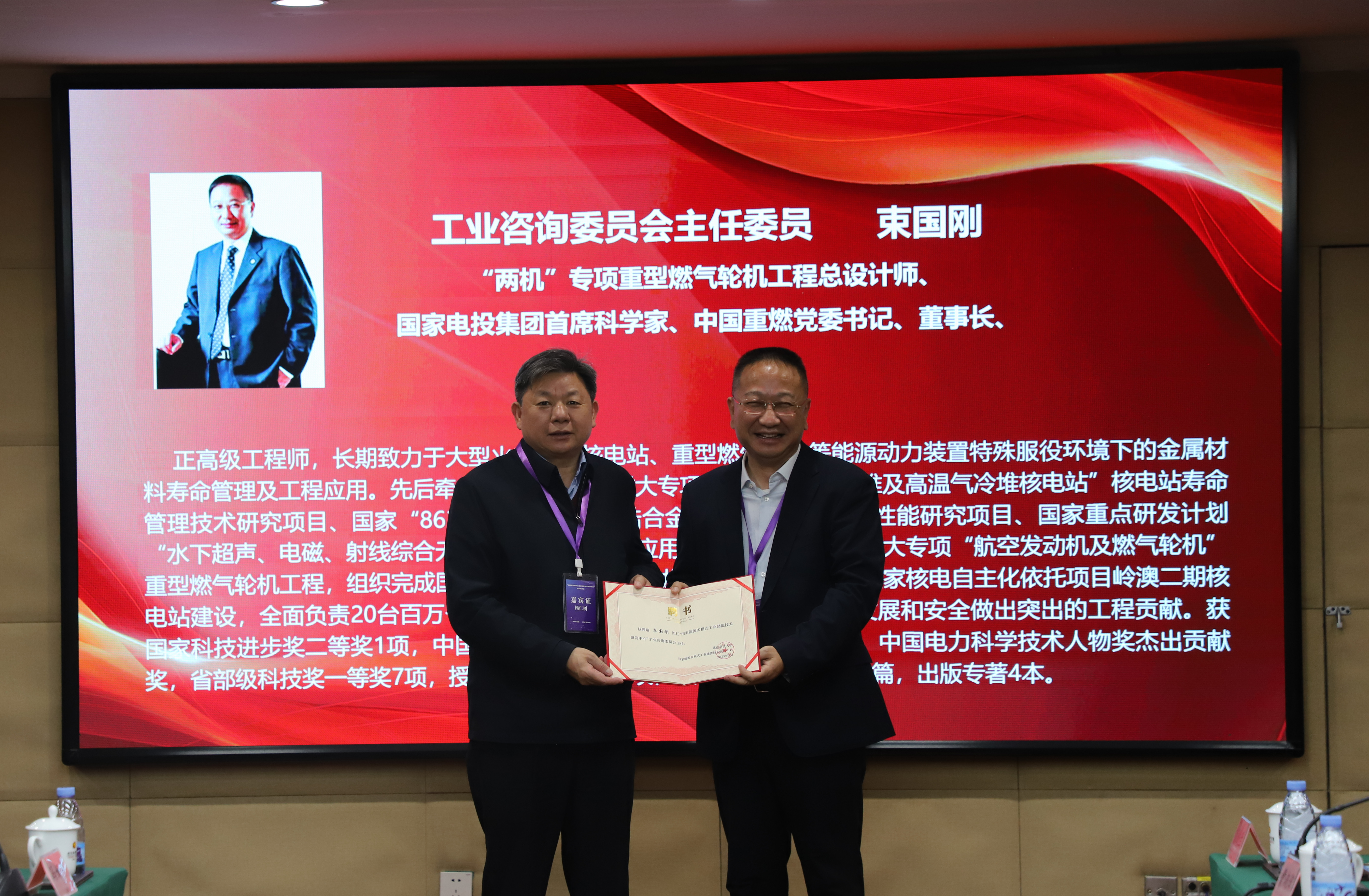 杨仁树为工业咨询委员会主任束国刚颁发聘书