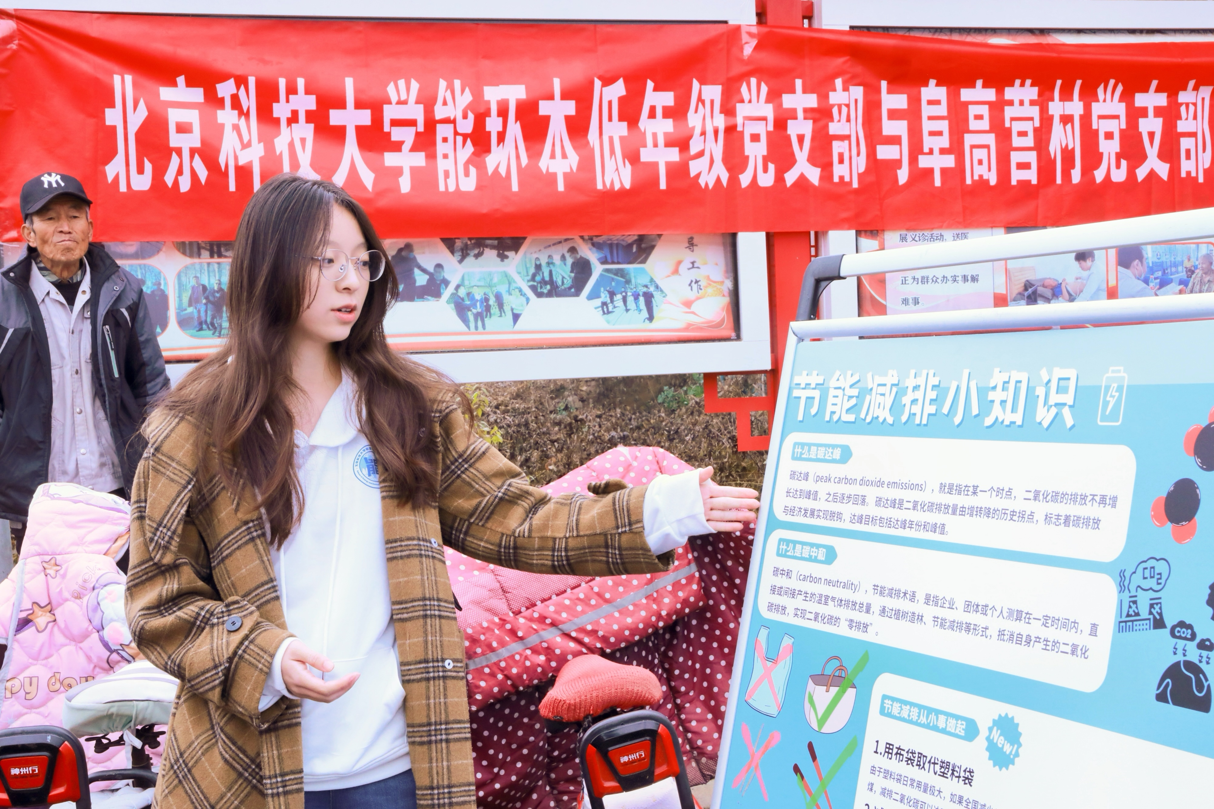 环保外展宣传分为知识科普、废物利用和科技展览三个部分。在知识科普板块中,支部成员向村民们讲解了垃圾分类对于减少污染以及促进资源循环利用的积极作用,介绍了低碳理念在日常生活中的具体应用,如用布袋取代塑料袋、减少一次性筷子的使用、合理使用电子产品等。通过环保知识科普,村民们更加深入地了解了垃圾分类和低碳生活的重要性。