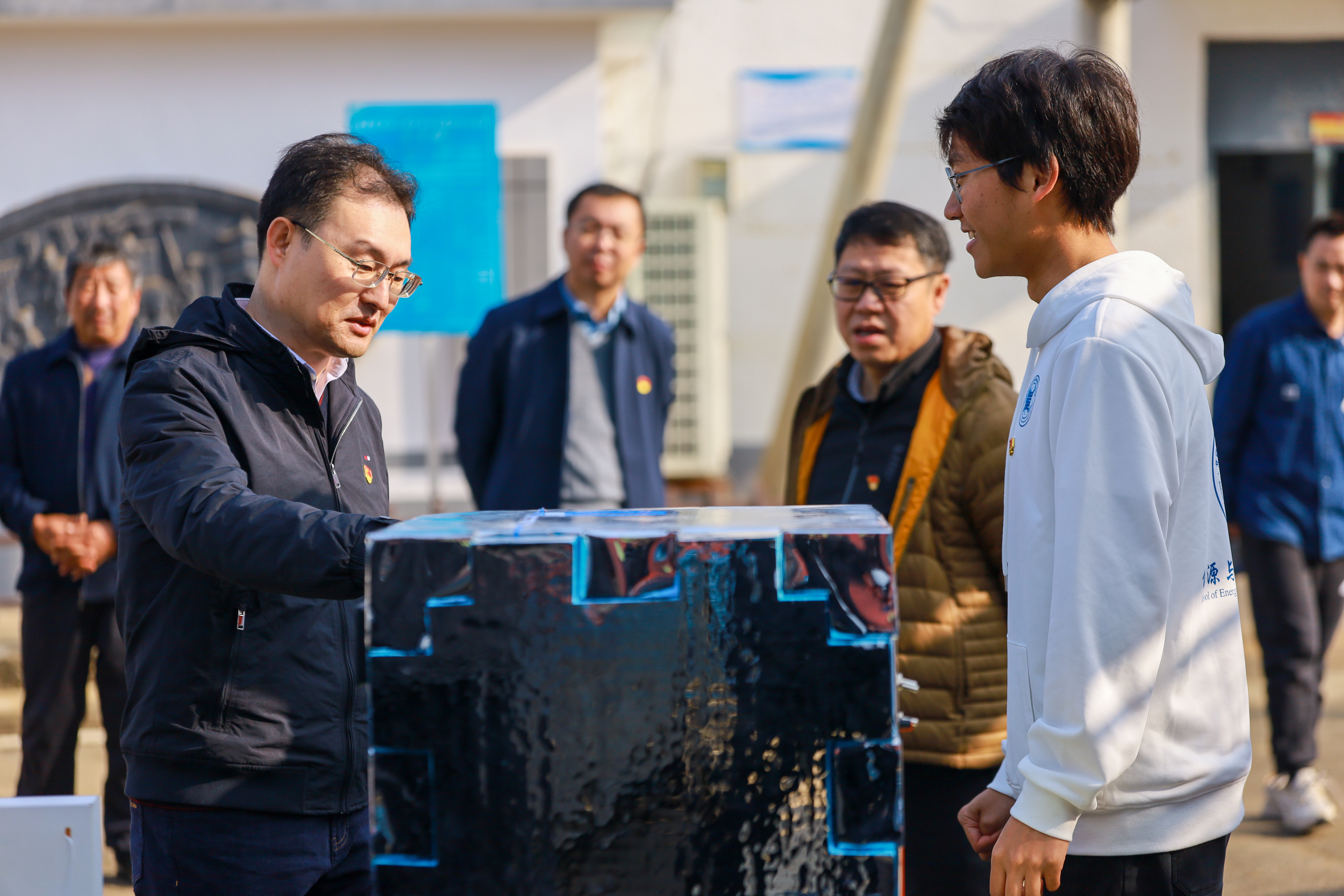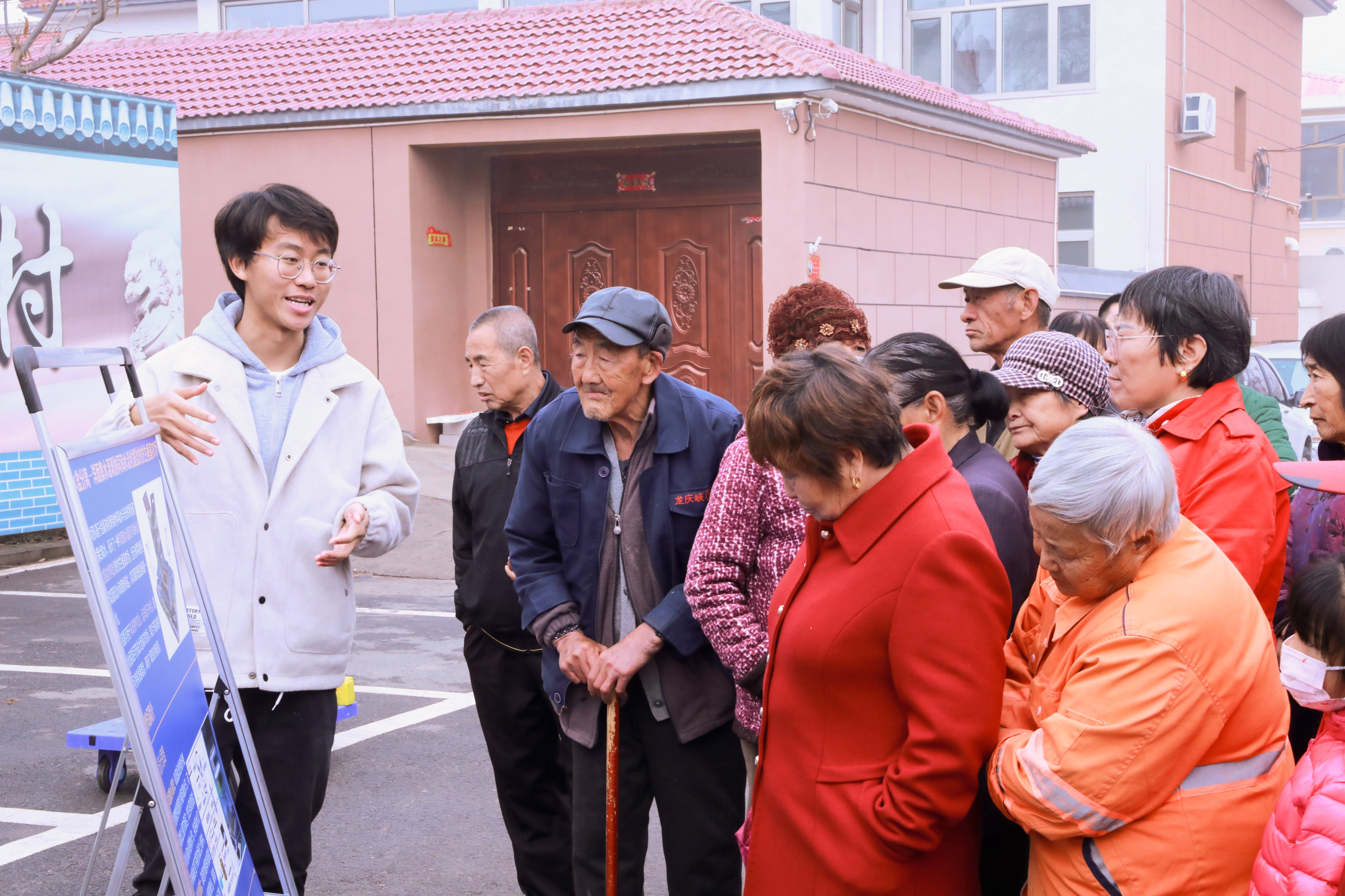 在科技创新板块中,学生党员刘倚宏向村民展示了第十七届全国大学生节能减排社会实践与科技竞赛获奖作品,并深入浅出地向村民讲解了作品设计中蕴含的低碳理念。特等奖作品“水盐分离——洋面集水灌溉协同海水淡化提盐的仿生垂直农场”让村民们感受到能实现全天候、低能耗、灌溉提盐一体化的科技力量;一等奖作品“窗流不息——基于‘光电多项转化’与‘梯度热损利用’的一体化保温液流窗”让村民们体会到在节能减排的同时也能让生活更加便利。两件作品充分展示了能环学子在节能减排领域的创新成果,引发了村民们对低碳环保技术的浓厚兴趣。