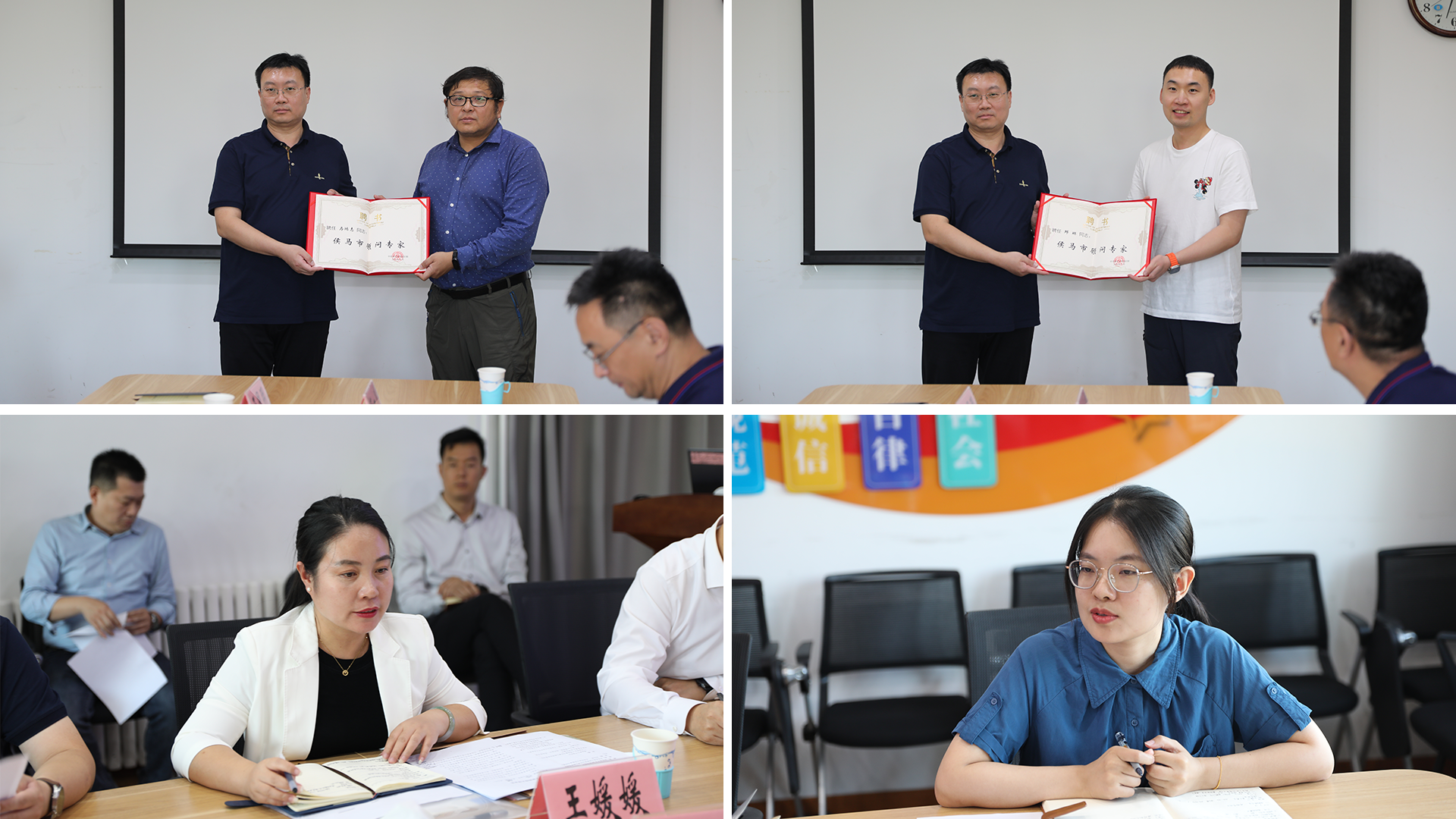 侯马市现场向学院环境科学与工程系马鸿志教授、热科学与能源工程系邱琳教授颁发“顾问专家”证书。两位教授表示,将充分发挥专业优势,为侯马市产业升级和山西建邦集团技术创新提供精准指导。座谈环节中,双方围绕人才引进机制、联合培养模式及产学研融合路径展开热烈讨论,达成多项共识。