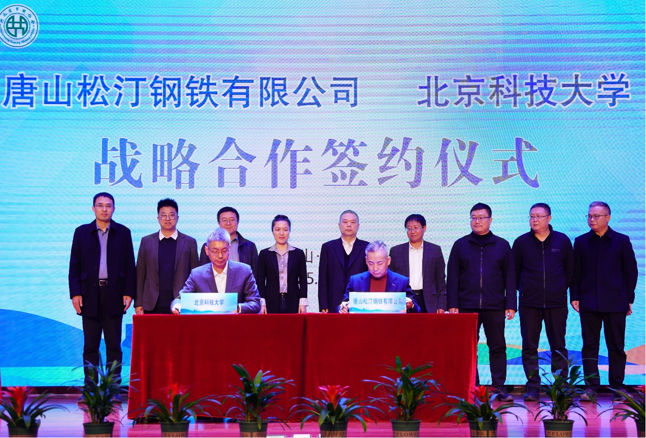 在与会嘉宾的共同见证下,学校党委常委、副校长焦树强与唐山松汀钢铁有限公司总经理李志强共同签署《战略合作协议》。双方将在唐山松汀钢铁有限公司共建"绿色低碳钢铁技术研发与应用基地",聚焦钢铁全流程节能降碳、冶炼环节低碳技术、碳足迹管理、绿色标准制定等八大方向开展联合研发与产业化应用。此次合作是学校深化产学研融合、服务行业绿色转型的又一重要举措。