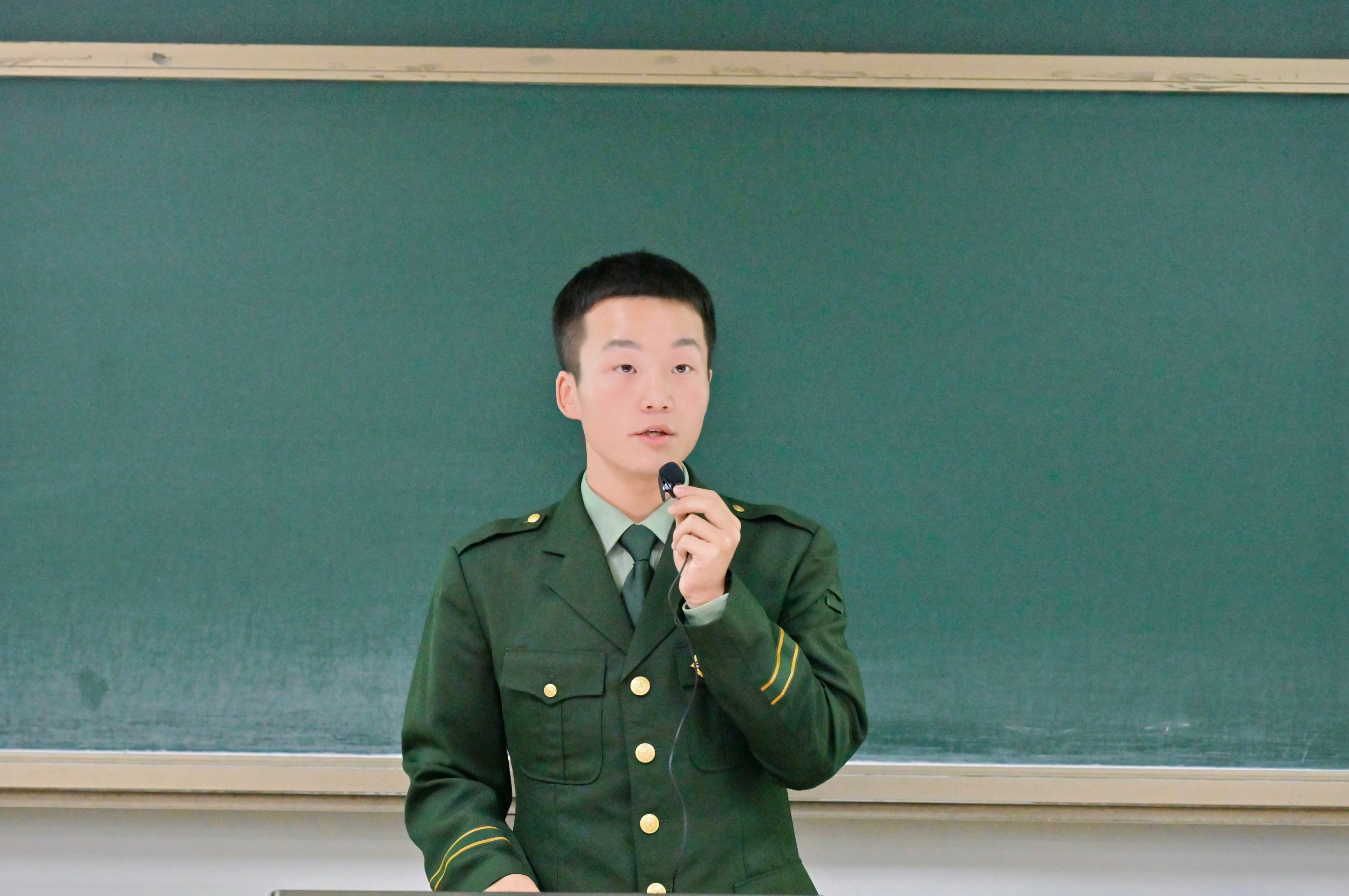 2021级本科生马震以参军入伍为主题,分享了当兵的信念、军旅生活以及退役复学后的感受,并为新生解读了大学生应征入伍的相关政策。他鼓励新生参军入伍,未来能成为伟大国防事业中的一员,守护这片我们深爱的土地。