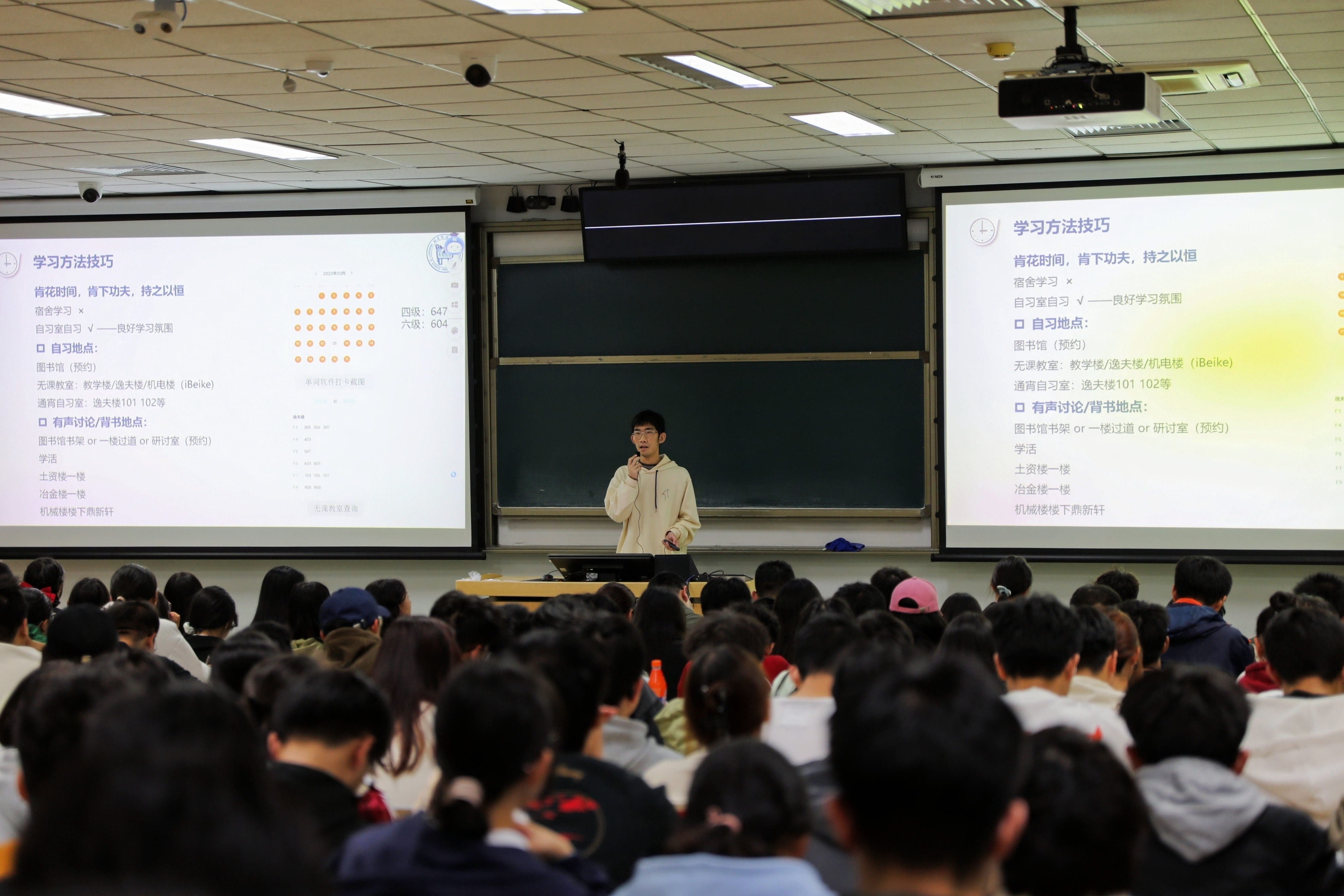 2022级本科生陈斯鼎从学习技巧、时间管理和心态调控等方面分享了他的学习方法与学习经验,他激励大一同学在大学四年中认真学习,做好规划,将四年时间凝结成自己的梦想,度过充实而有意义的大学生活。