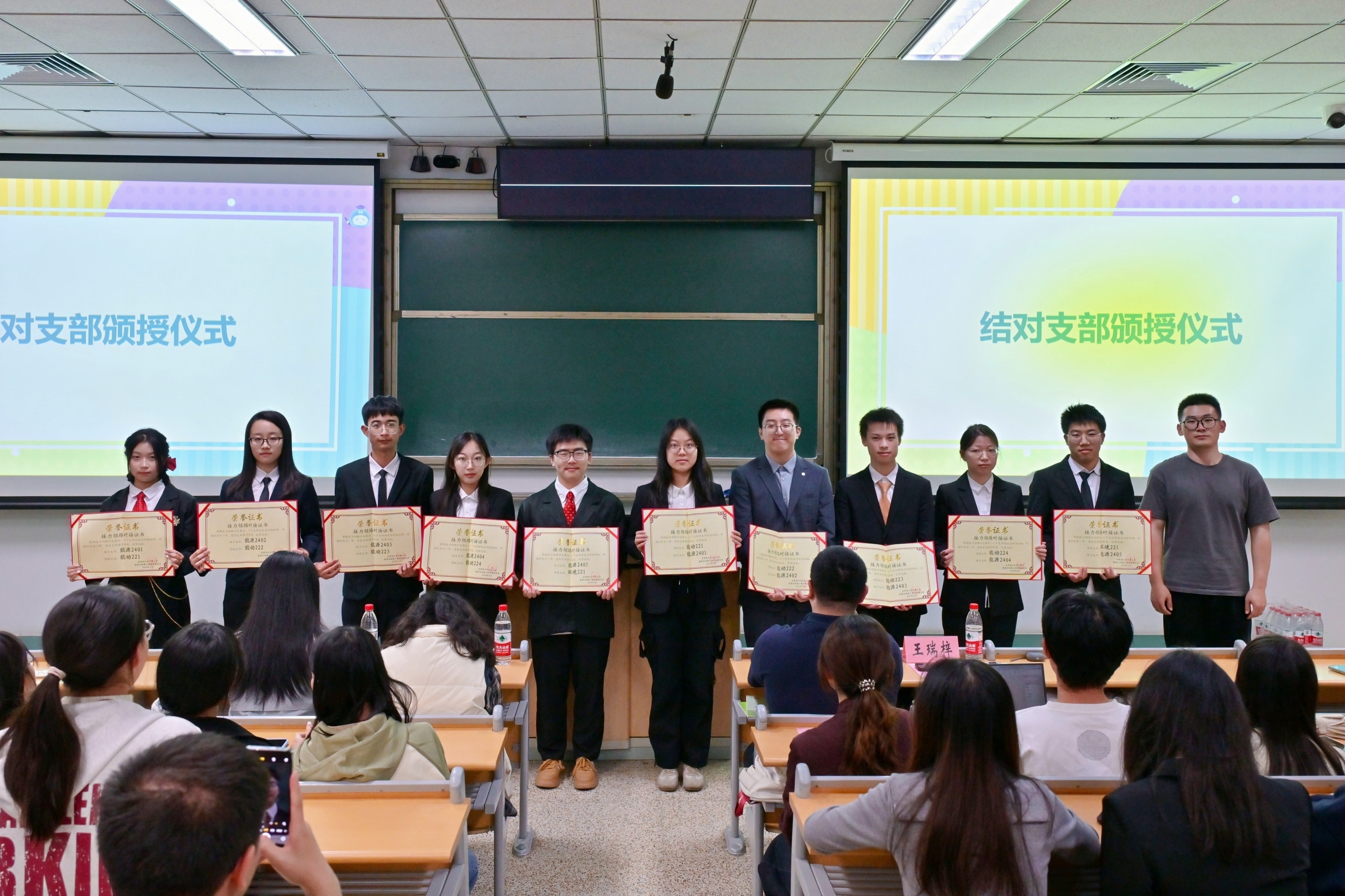 王瑞梓、王思淼为结对支部颁发证书。高年级团支部代表、能动222团支书周熙锦从“帮助与引导”“挑战与机遇”“交流与沟通”三个方面详细阐述了“接力领路”计划对大一同学的意义,希望结对支部能够在未来携手并进,共同进步。