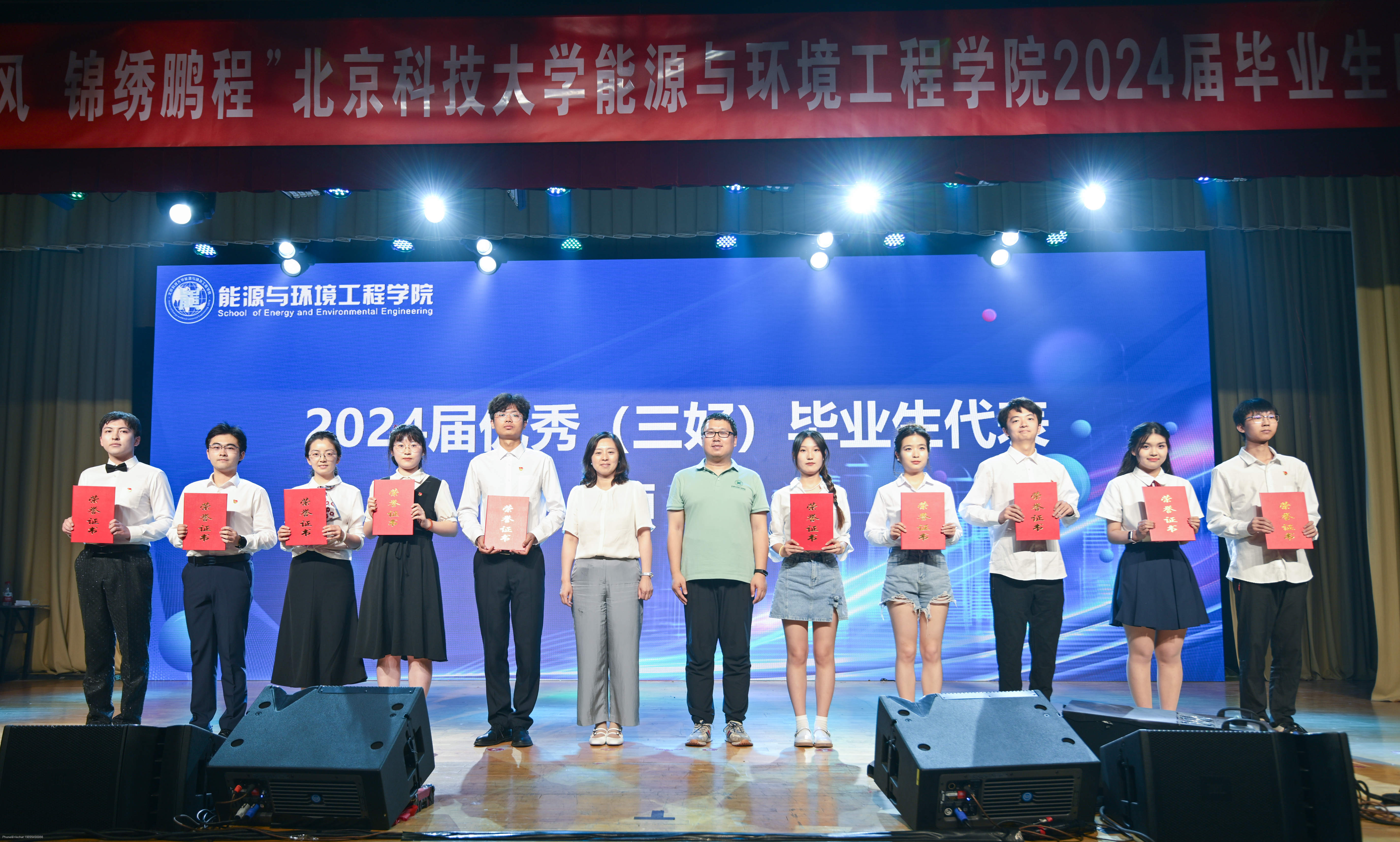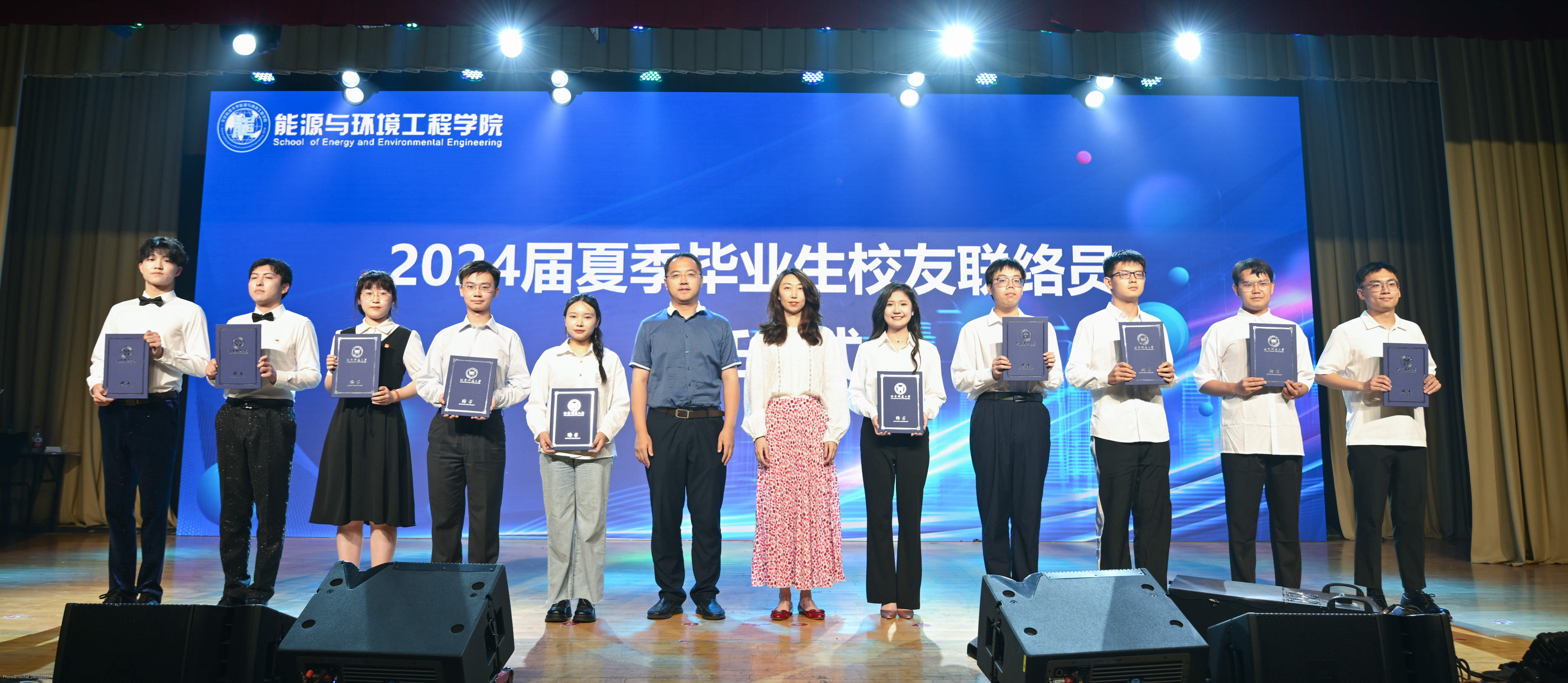 李诗媛、程世昆为2024届优秀(三好)毕业生获奖代表颁奖,姜佳男、杨志伟为2024届夏季毕业生校友联络员颁发聘书。