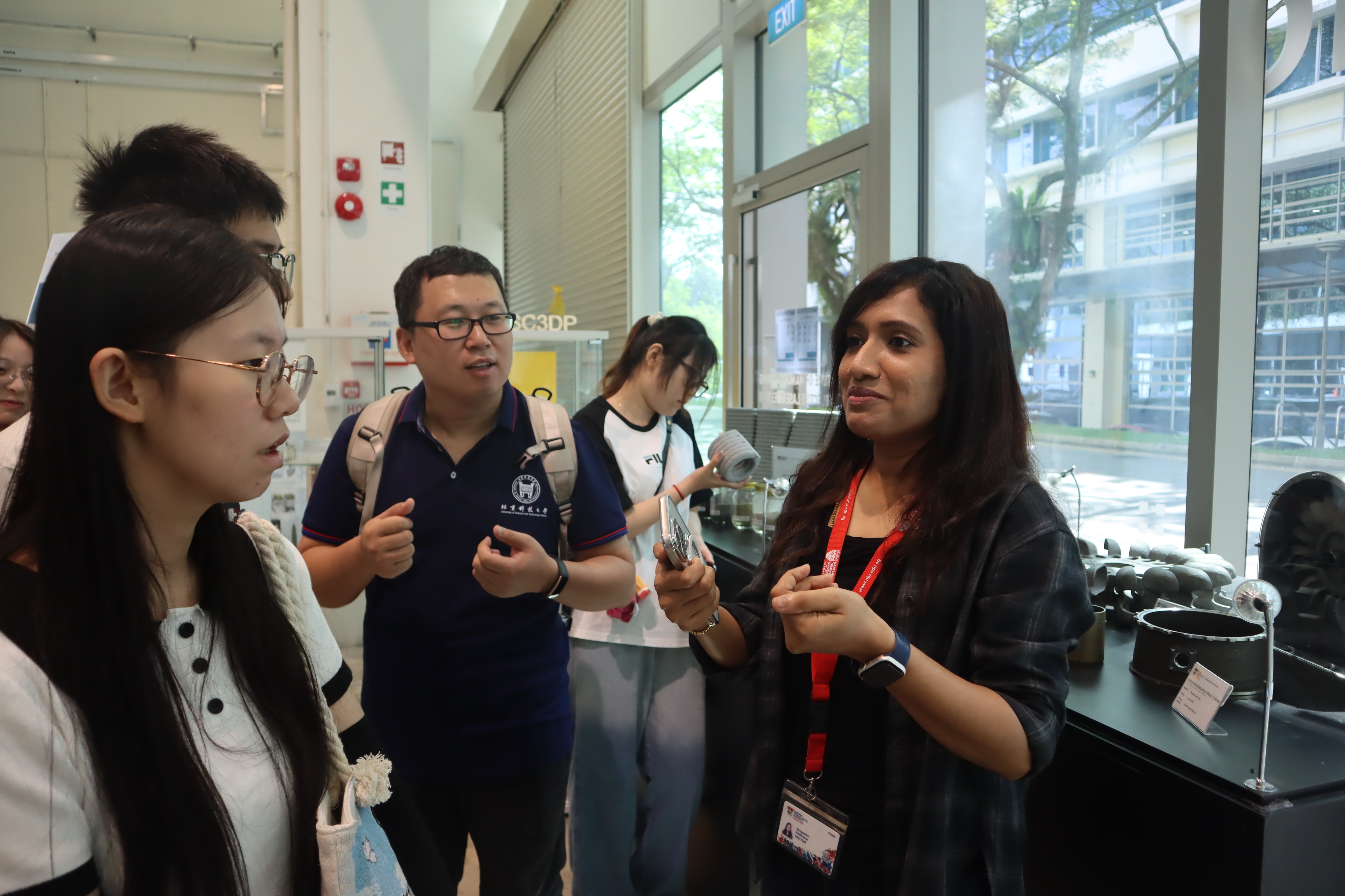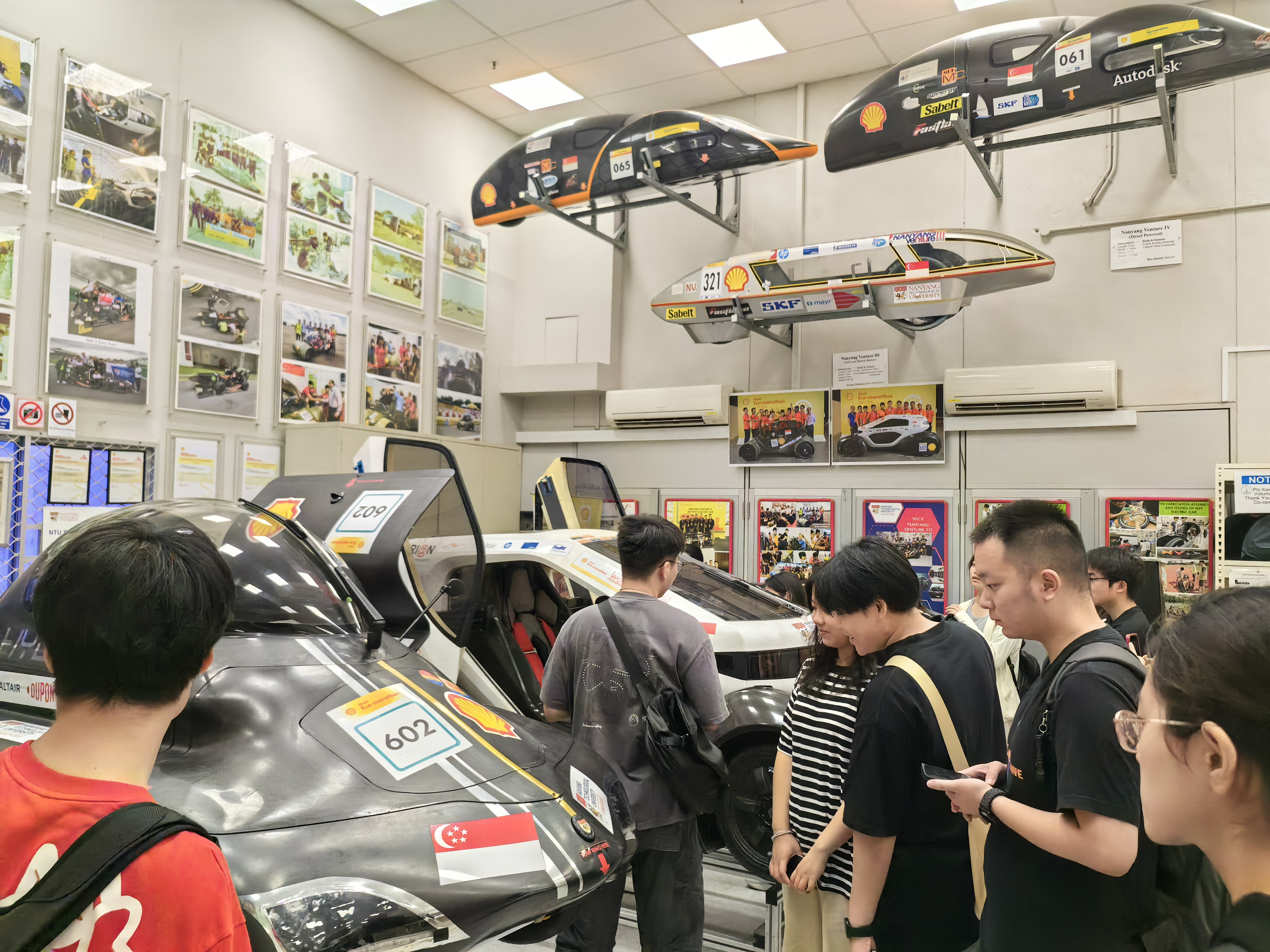 访学团在南洋理工大学机械与航空航天工程学院教授及学生代表的带领下,首先参观了赛车模型实验室。在这里,师生们详细了解了赛车的内部构造、制作工艺、所需材料以及3D打印技术在赛车制造中的应用。通过现场讲解,访学团对先进制造技术在实际工程中的应用有了直观而深刻的认识。