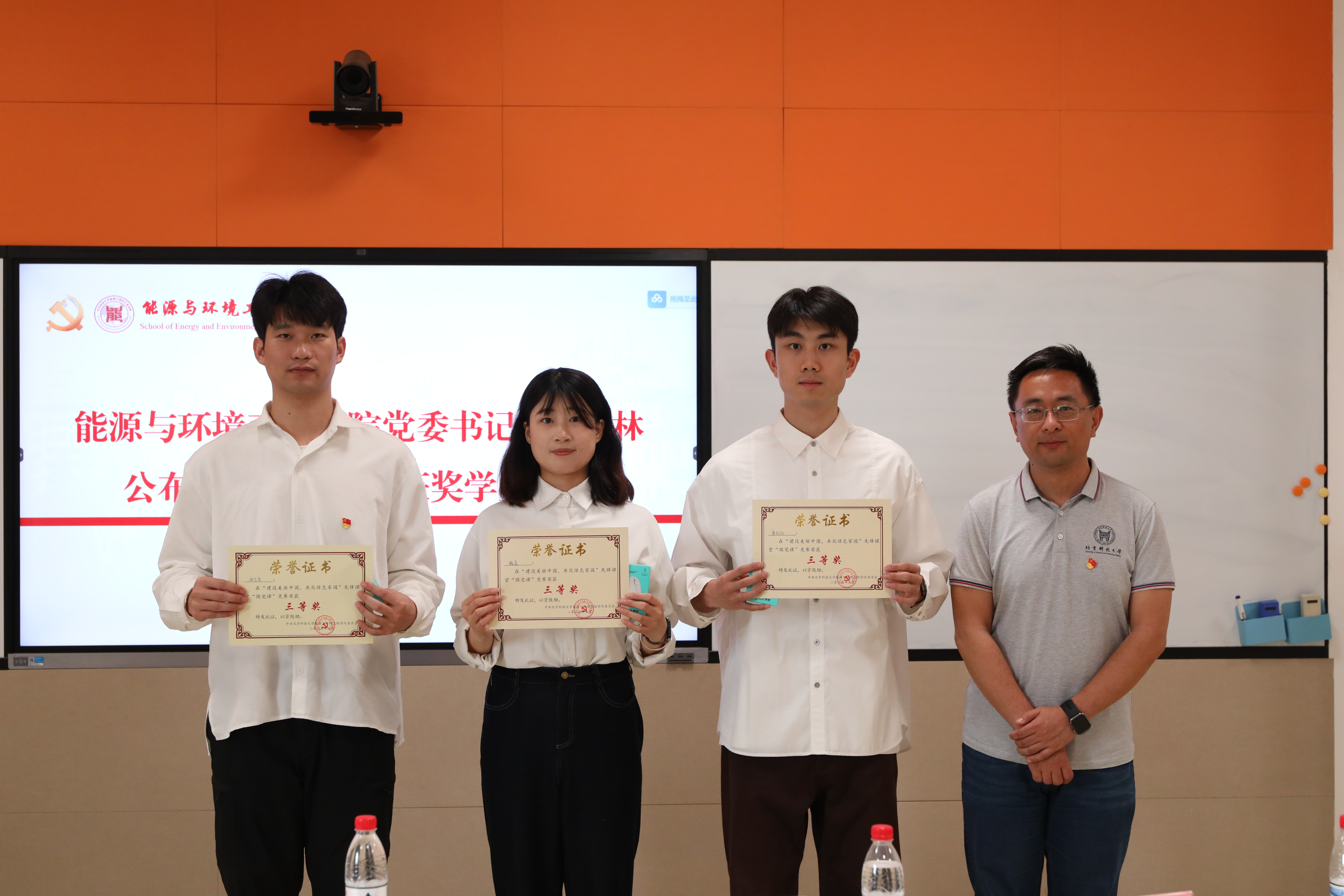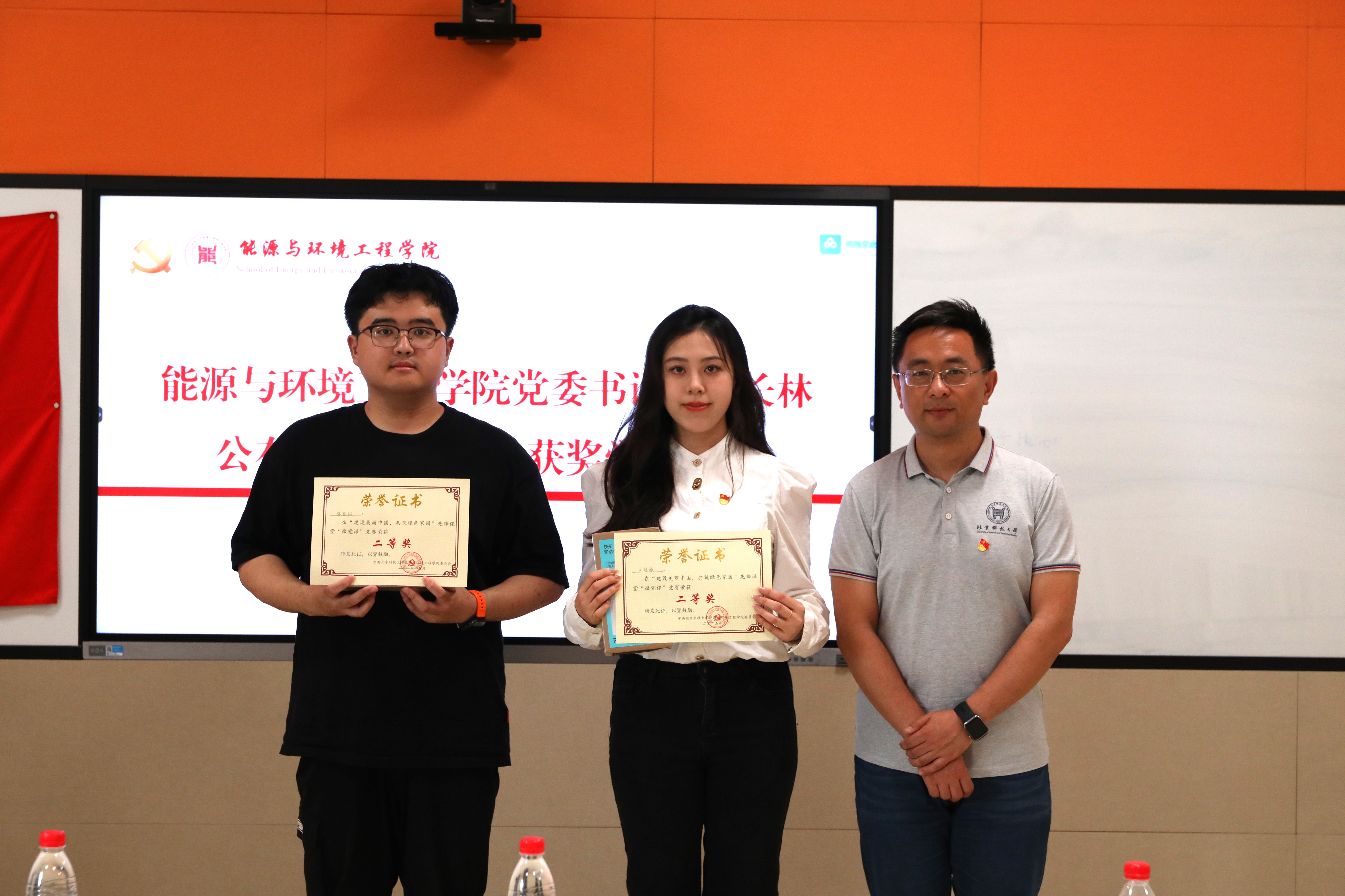 经过激烈的角逐,最终在本次“建设美丽中国,共筑绿色家园”先锋课堂“微党课”竞赛中,陈怡馨获得一等奖,张佳驹、关煦姣获得二等奖,魏嘉、谢吉泉、廖剑伯获得三等奖。孙长林为获奖同学颁发证书。