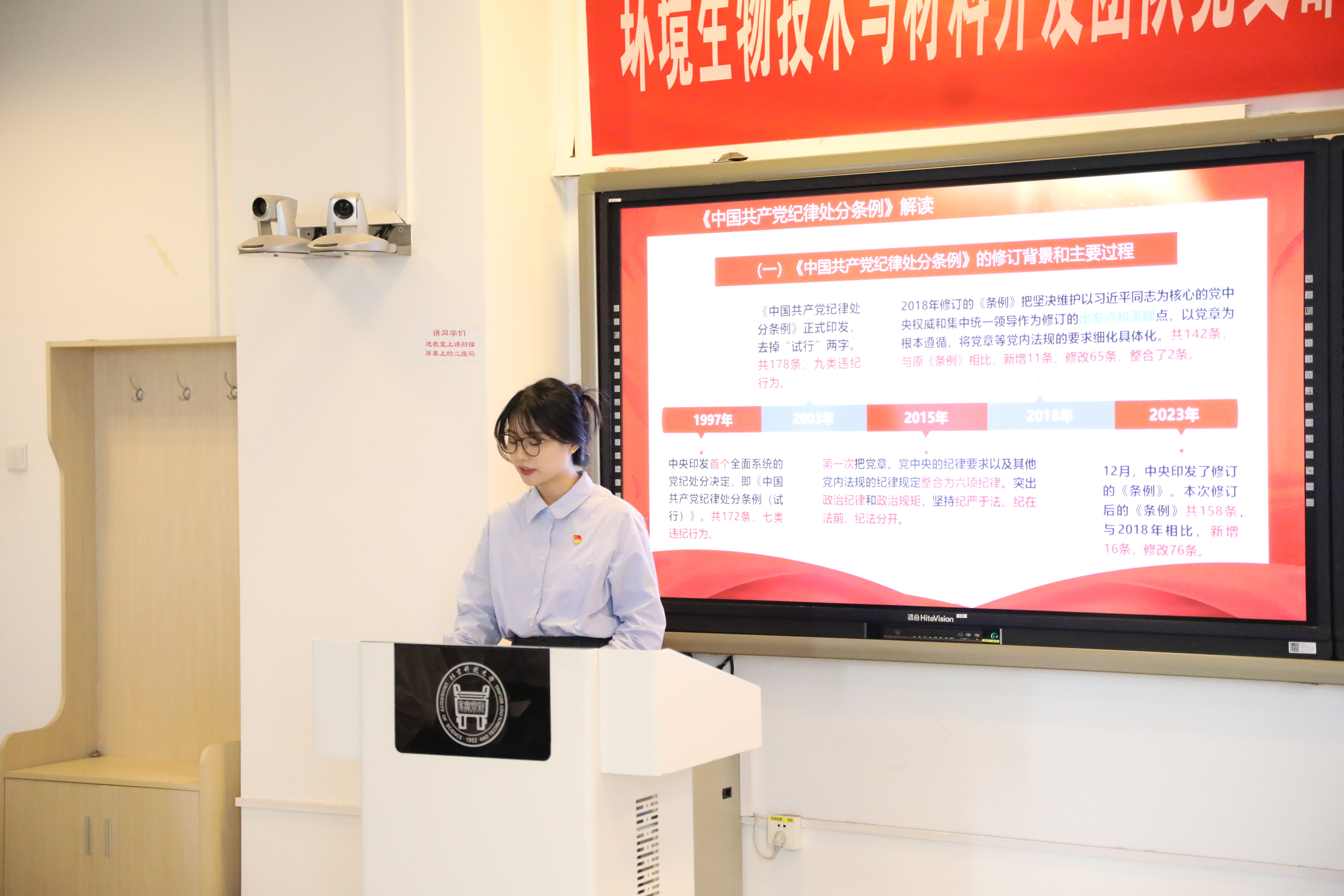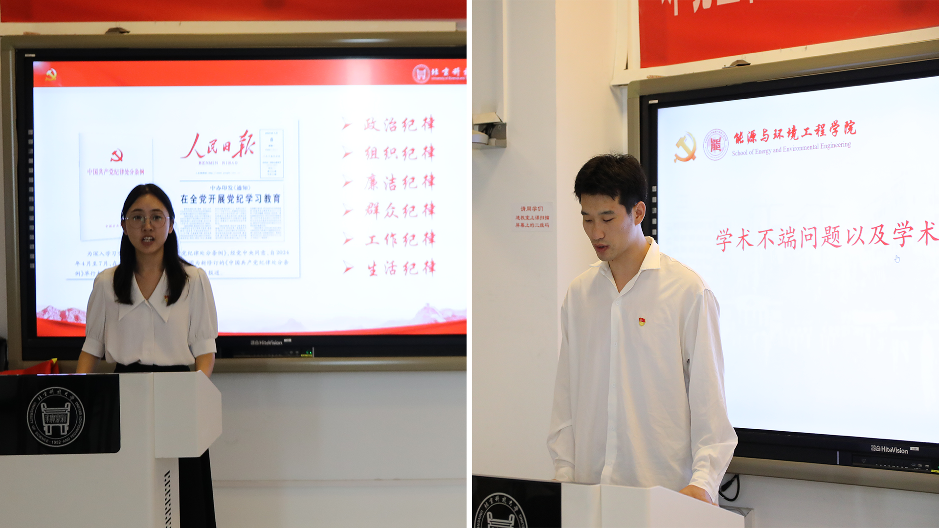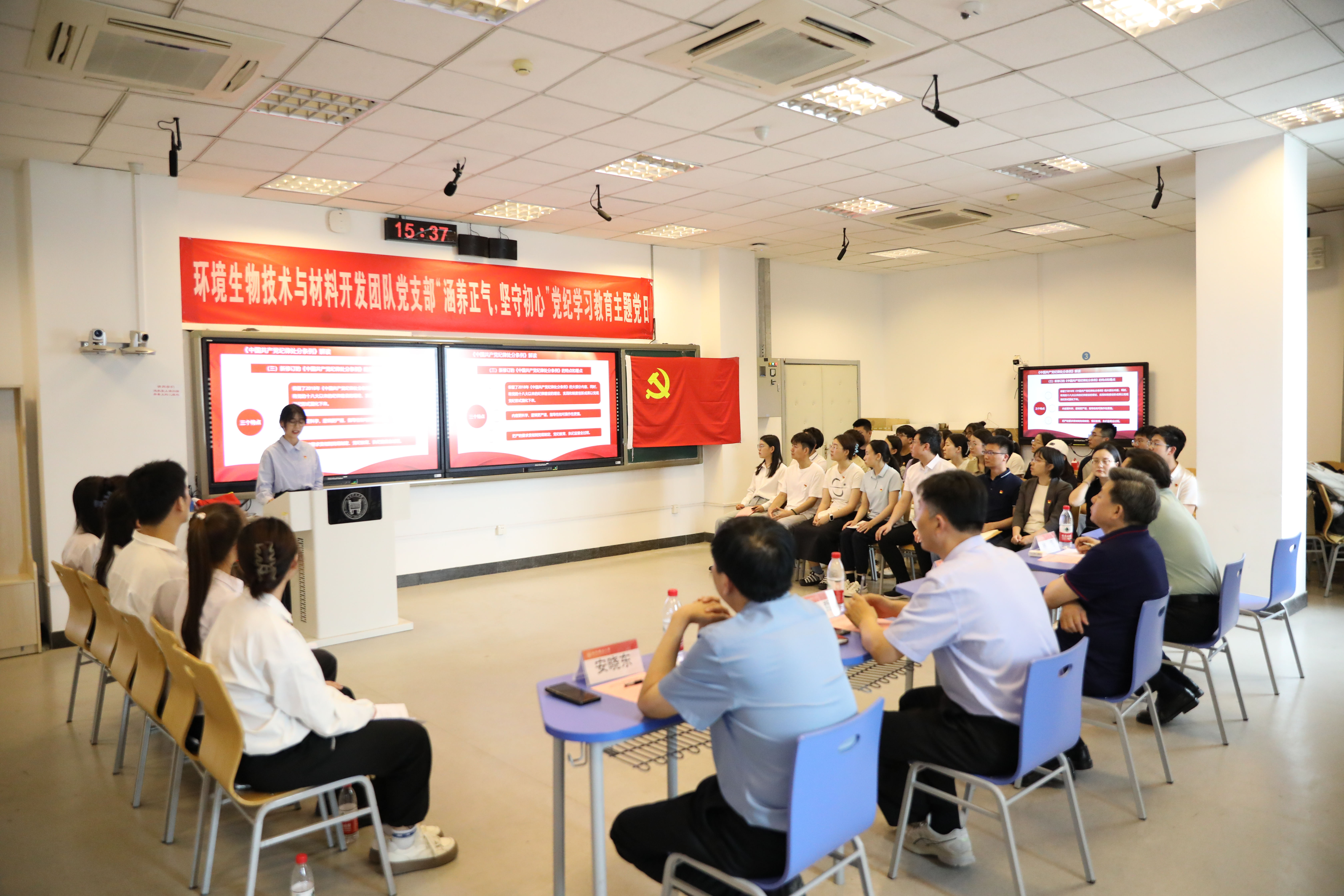 支部党员罗玉秋和谢吉泉分别分享了涉及环保领域和研究生学术科研的《条例》内容,结合近年来发生的典型案例,详细剖析了违反纪律的行为及其后果,使全体党员深刻认识到自觉在专业领域和学术活动中遵守纪律的重要性和必要性。