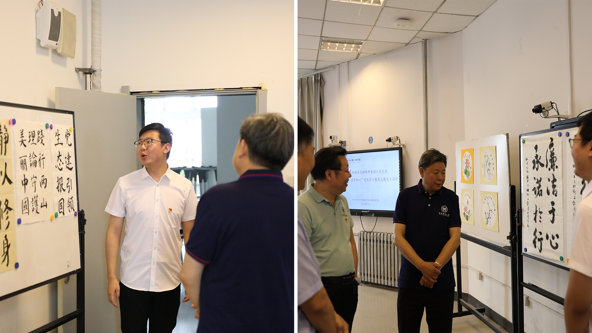 活动正式开始前,支部党员张鹏飞向与会领导介绍“党纪之心,墨香传递”主题书画活动成果展。