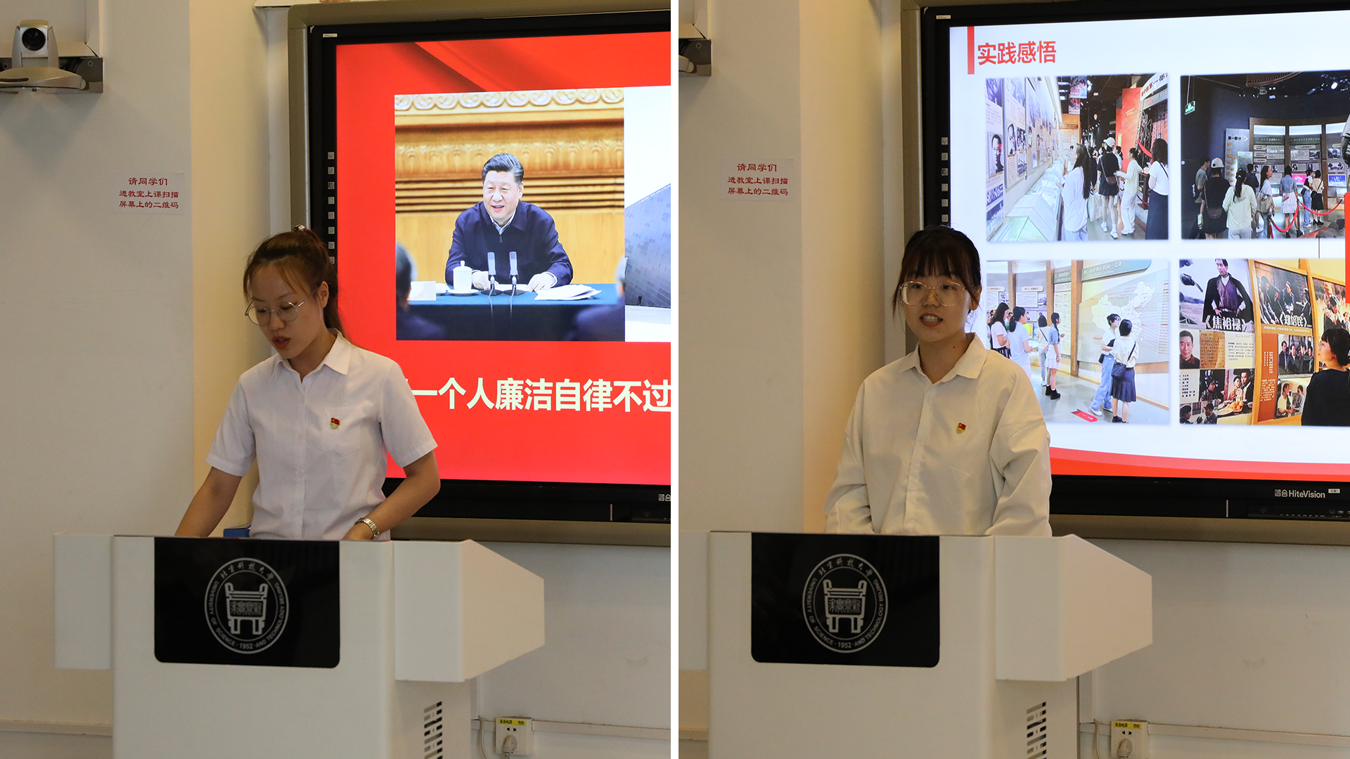 党纪学习教育文化作品创作成果展示环节,支部党员自发创作了形式多样的书法、字画作品。王紫薇和昝金雨以梅兰竹菊等传统文化中廉政符号创作了画作,展示了学生党员对廉洁文化、中华优秀传统文化的理解和诠释,弘扬了崇清倡廉、清正廉洁的正能量。