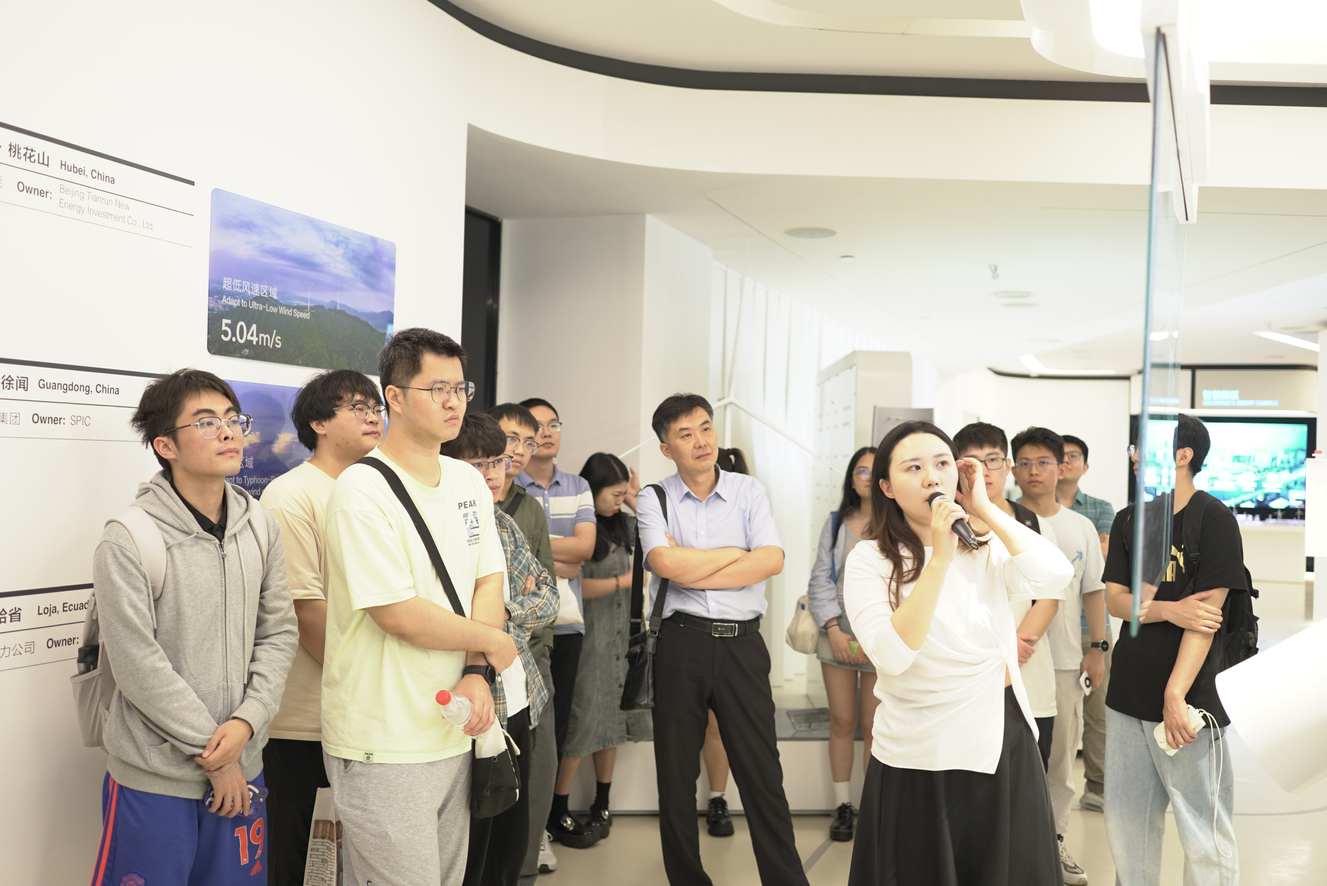 金风科技人力资源部负责人宋禹婷热情接待了能环学院师生,并带领参观了金风科技园区数字展厅。展厅内陈列着金风科技在风电领域取得的最新成果和技术创新,以及企业在环保和可持续发展方面的贡献。通过参观,能环师生对金风科技的发展历程、企业文化、产品特点和技术优势有了更直观、更深入的了解。