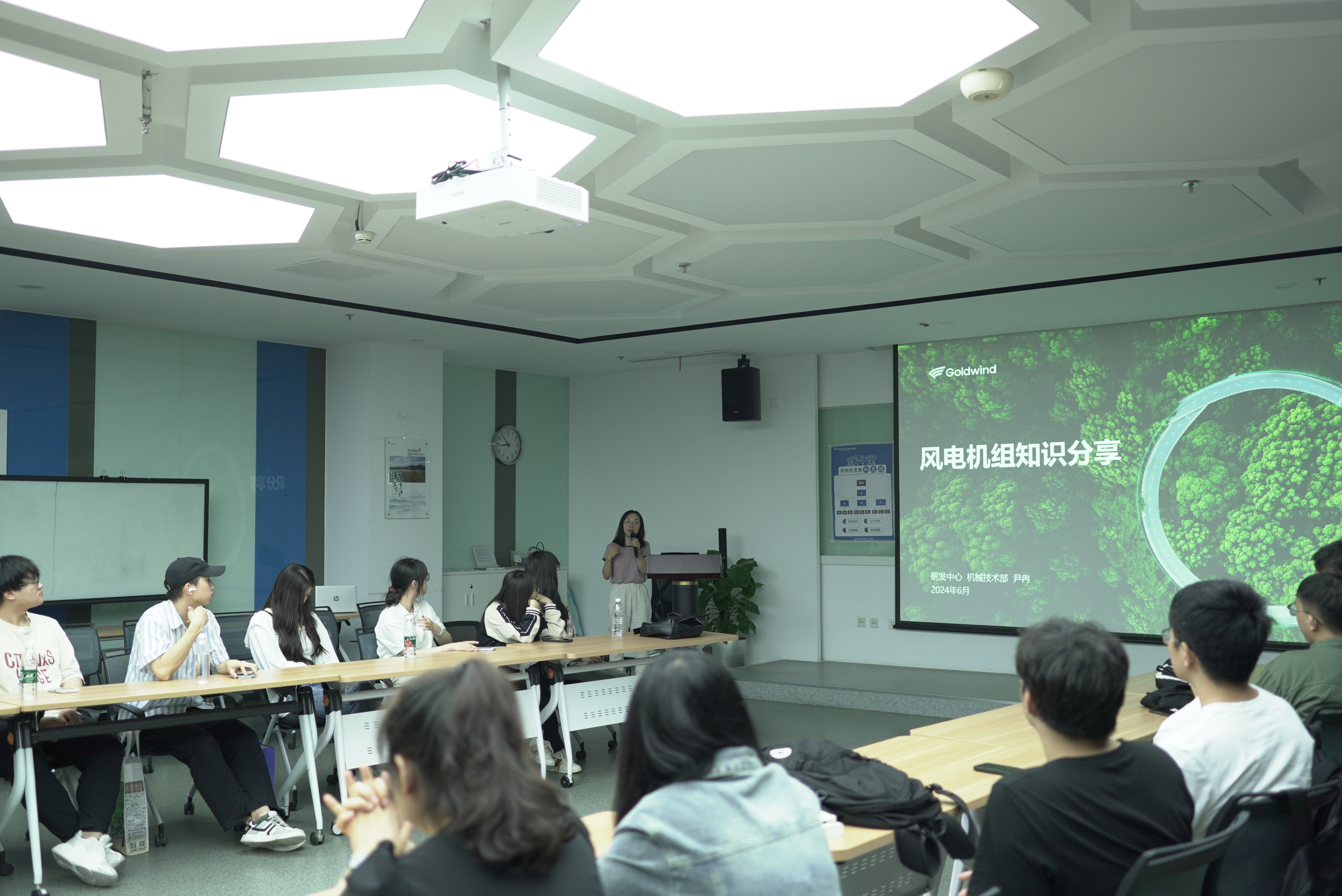 校友分享环节,金风科技技术专家、学校2009届热能系校友尹冉详细介绍了金风科技风电机组相关前沿业务知识,并结合自身工作经历分享了她在金风科技的成长历程和技术心得。她鼓励学弟学妹们要珍惜在校学习的机会,努力提升专业技能和综合素质,为将来步入社会做好充分准备。分享结束后,同学们积极就相关领域基础知识与专业问题向校友提问,获益匪浅。