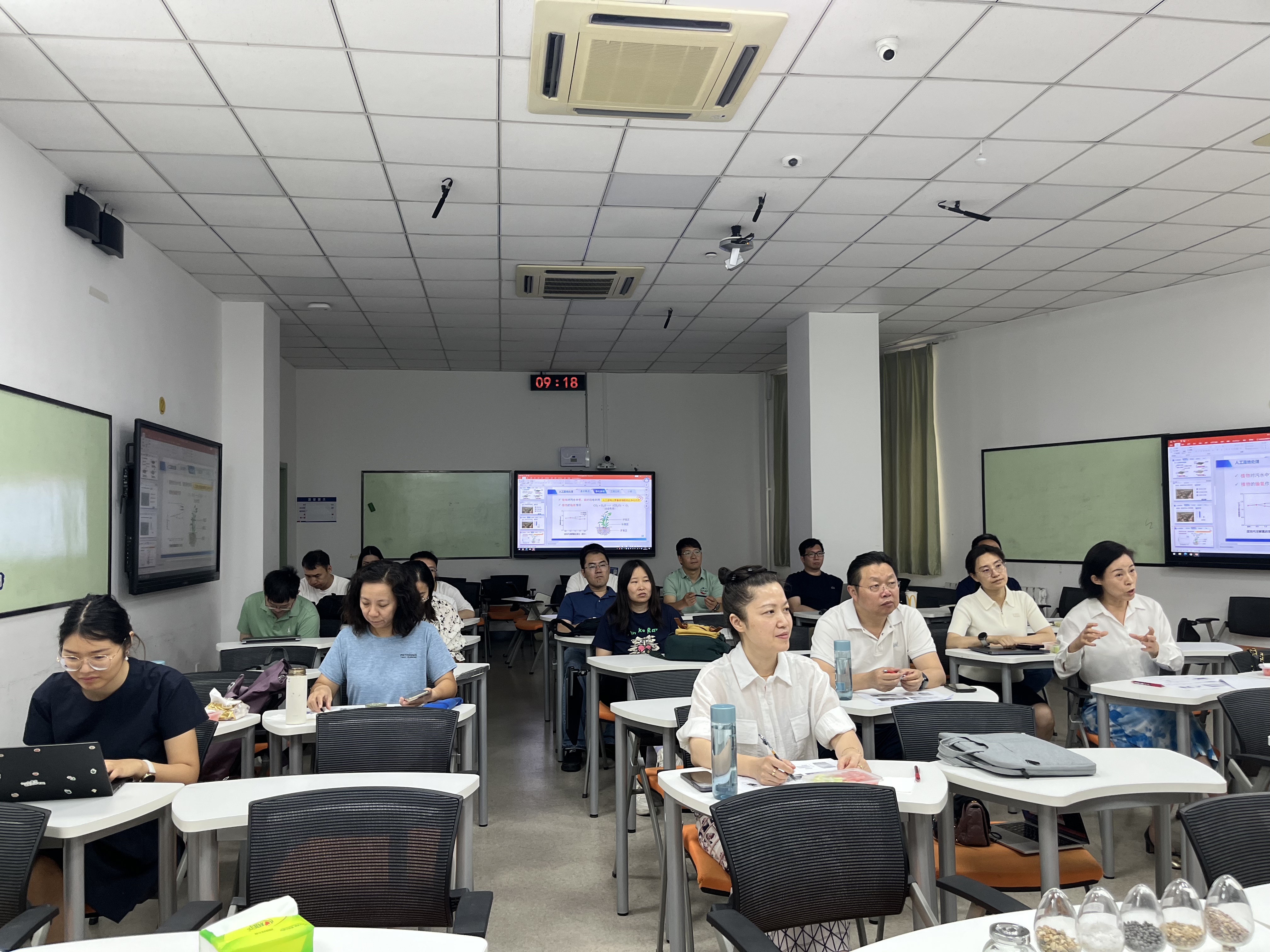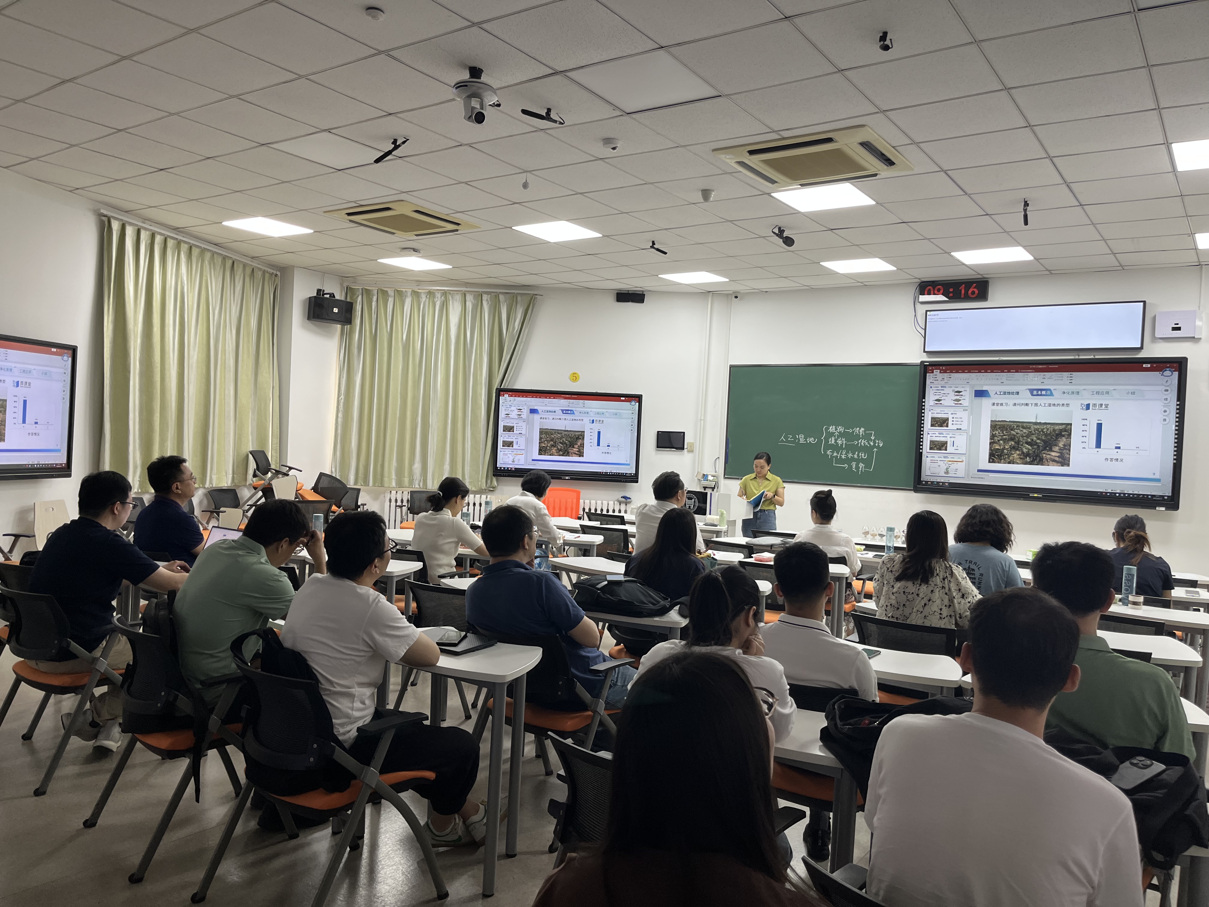 能环学院全体新入职教师及本科准入考察阶段青年教师现场观摩备赛课堂演示,亲身感受优秀的课堂教学,学习教学技能,助力提升教学水平。专家们对课堂演示的效果进行点评,对课件的内容编排、展示形式,授课语言的科学准确、课堂效果,板书内容、学生互动等多方面提出具体改进建议。这些点评和建议为青年教师钻研打磨课堂教学提供了完整深入的示范。