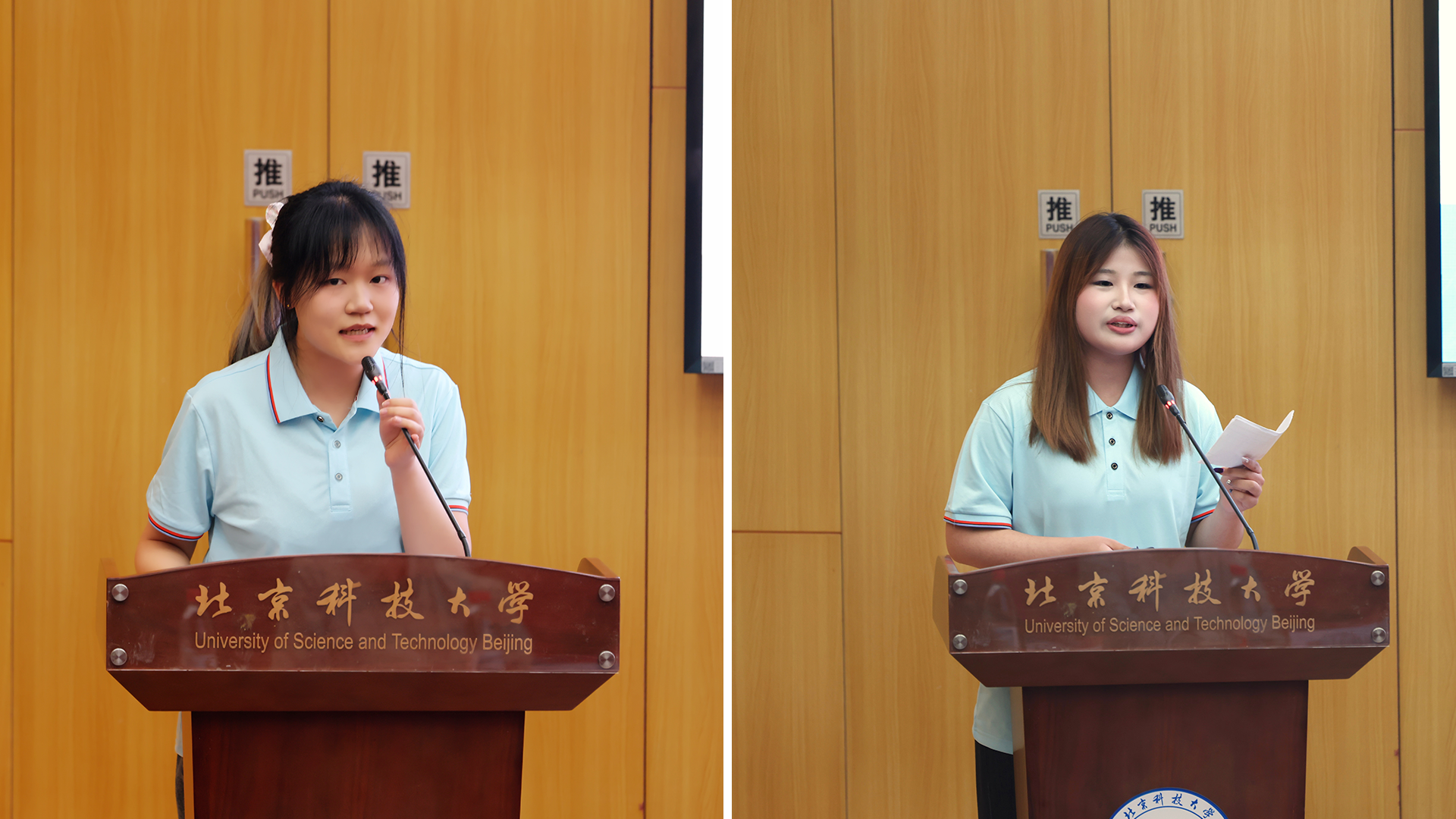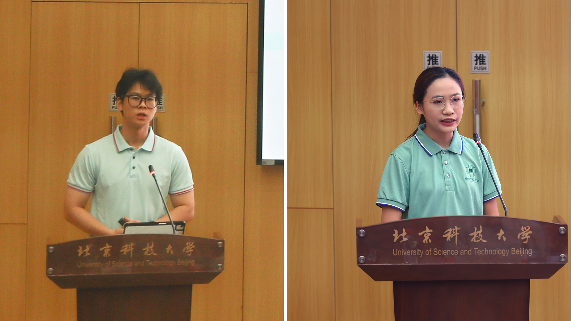 第十八届节能减排大赛国赛一等奖获得者李琪钰、陈嘉怡分别作答辩现场展示,两位同学对标还原国赛答辩现场规格与细节,向在场学生展现了北科学子在节能减排决赛现场的风采。