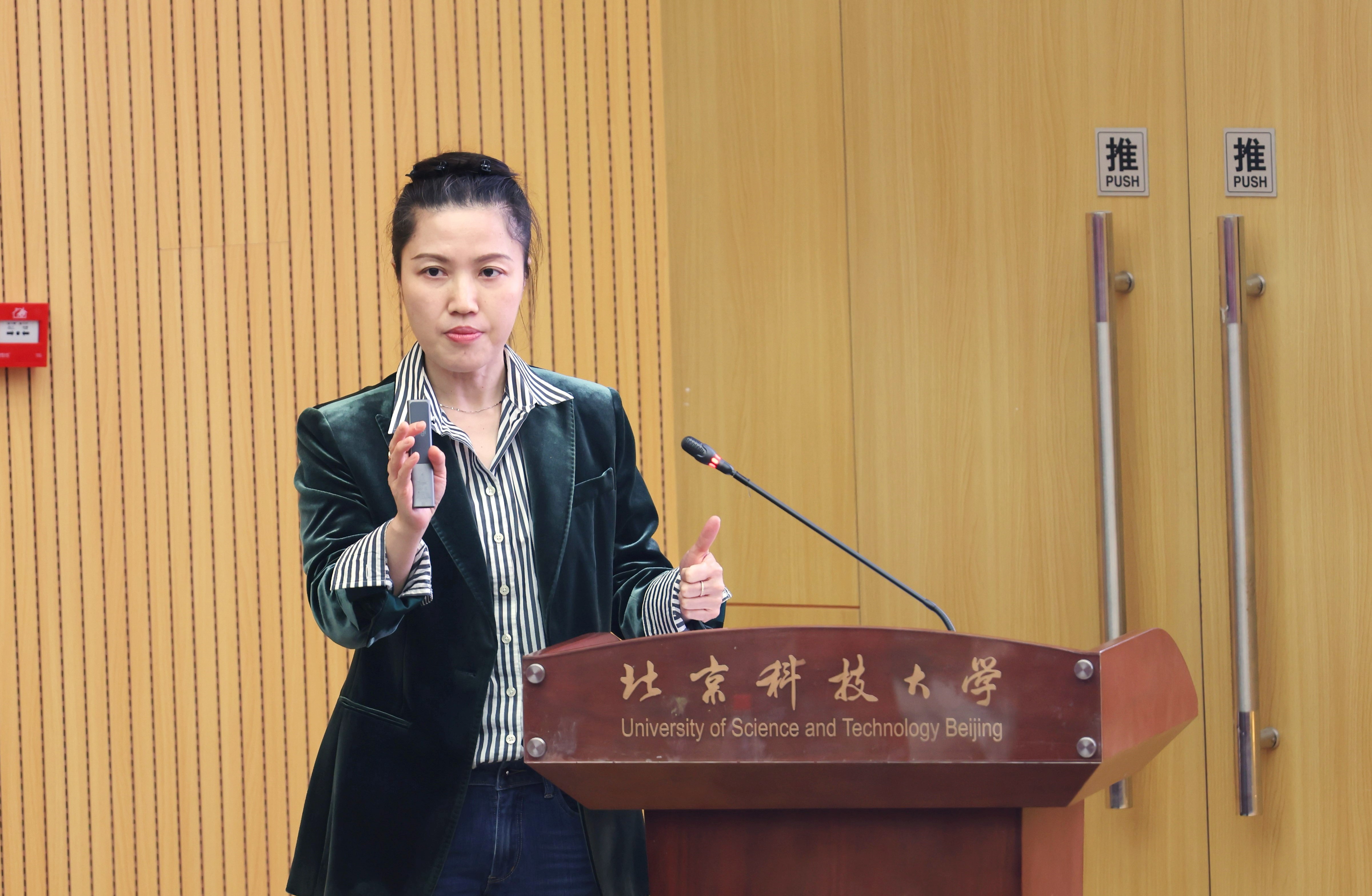 英国威廉集团院长、国赛资深评委冯妍卉教授全面介绍大赛情况。她结合第十七届与第十八届全国大学生节能减排社会实践与科技竞赛中的我校优秀项目,深入分析了作品创作背景、创新点以及实物制作注意事项,强调要重点关注选题创新性和实物可观、可动、可操作性能,并勉励同学们努力挖掘“金点子”,在第十九届节能减排大赛中取得佳绩。